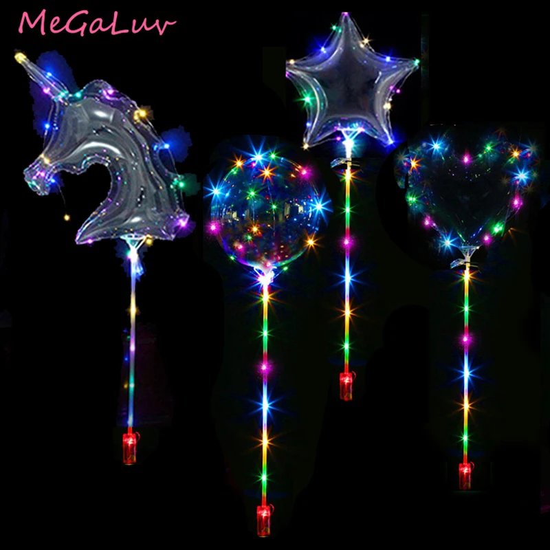 Светящийся шар Bobo со светодиодной подсветильник кой, 20 дюймов, единорог, звезды, сердце, круглая, с палочками, для дня рождения