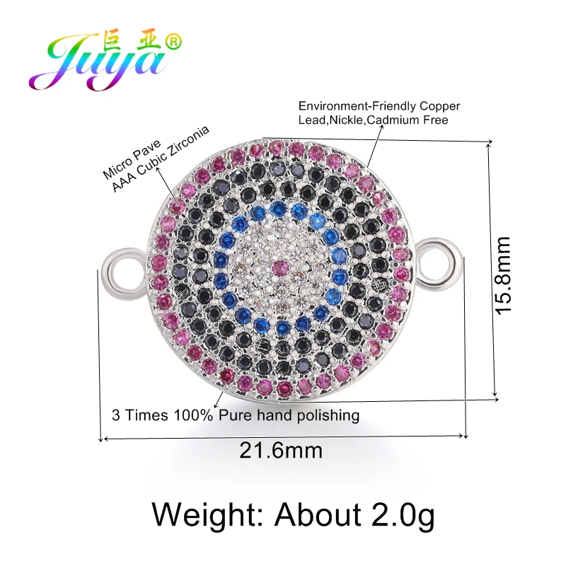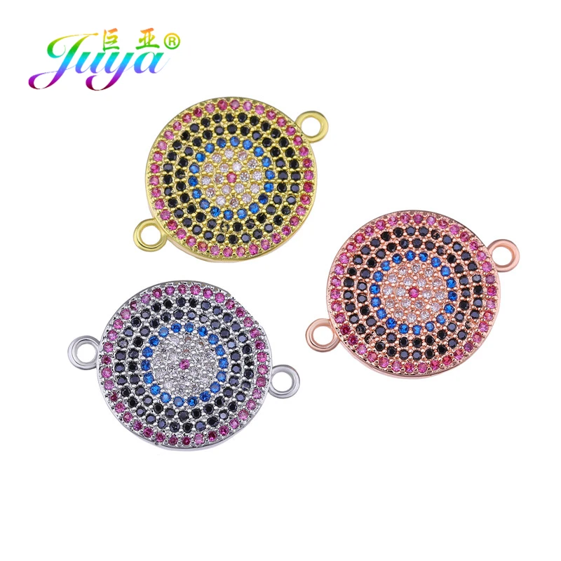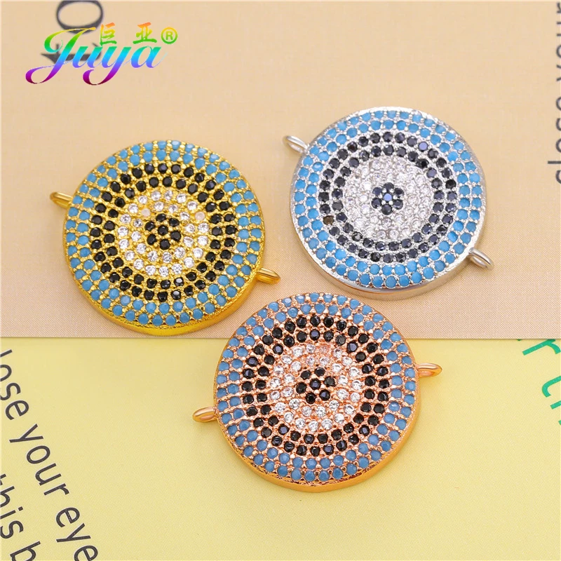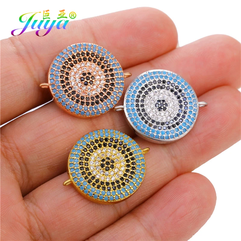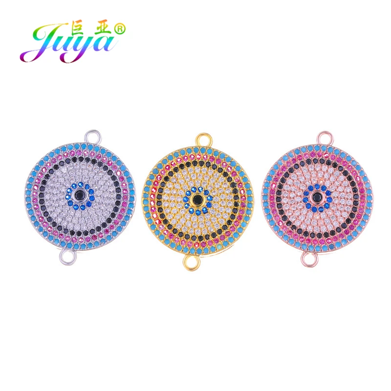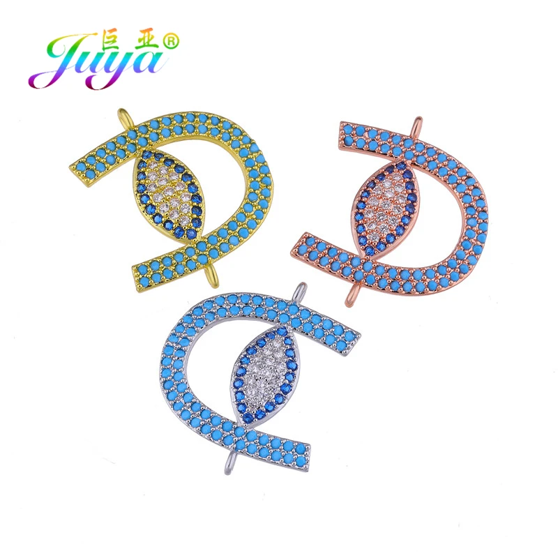 Juya ручной работы микро паве красочный Циркон греческий сглаза шармы соединительные аксессуары для женщин мужчин DIY модные браслеты
