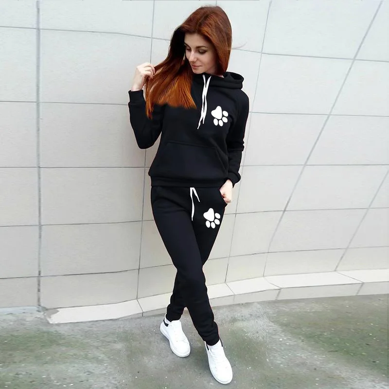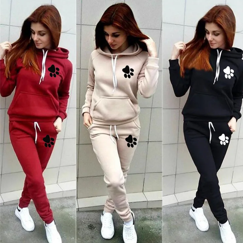 Женский спортивный костюм с капюшоном, комплект из 2 предметов, Свитшот и брюки, спортивный костюм, зимняя спортивная одежда Chandal Mujer размера плюс 5XL, 2020