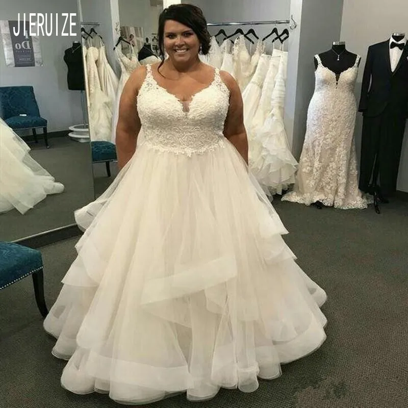 Кружевные Роскошные свадебные платья JIERUIZE, бальное платье с отк...