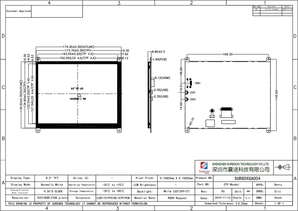88.0 "1024*768 4:3 совместимый с HDMI ЖК-модуль монитор TN экран с USB емкостной сенсорной панелью
