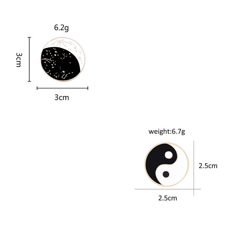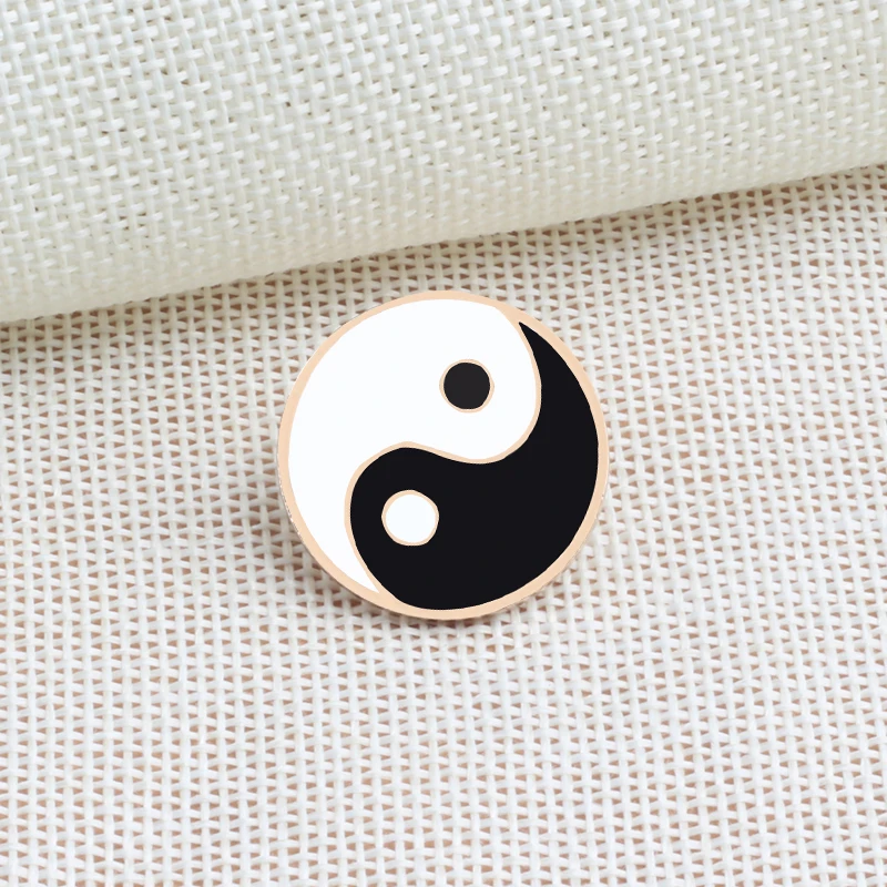 Китайская круглая черно-белая брошь Ying Yang Tai Chi, аксессуары, Винтажная брошь, Металлическая Булавка, крутые булавки на лацкан для женщин и мужчин, детский значок