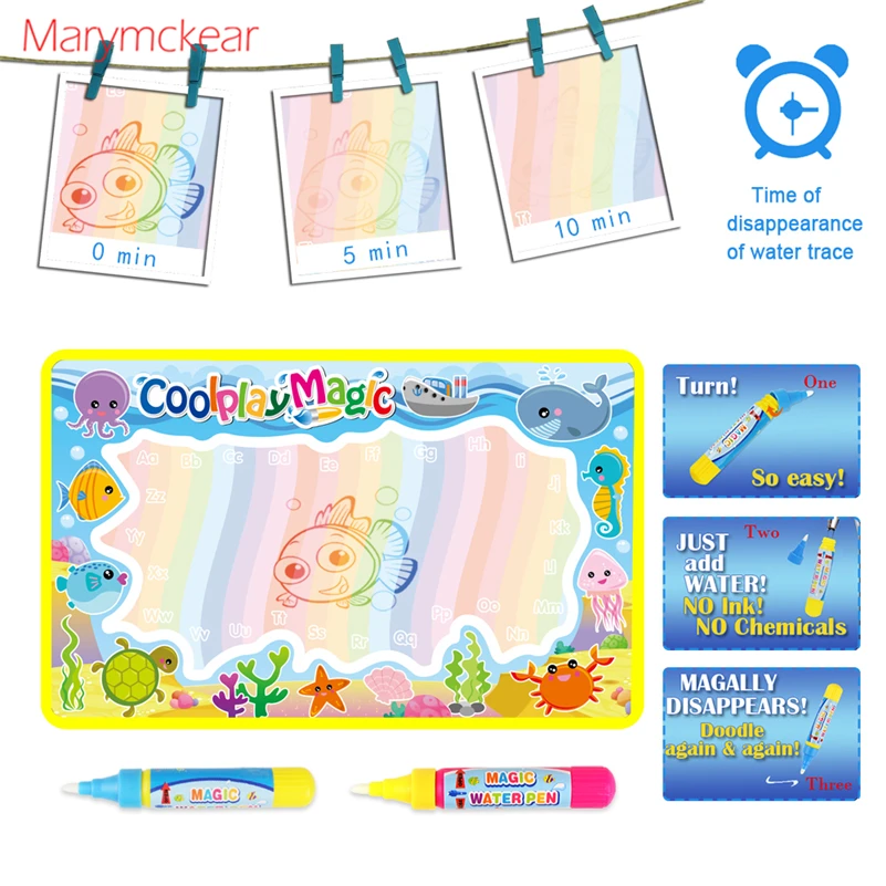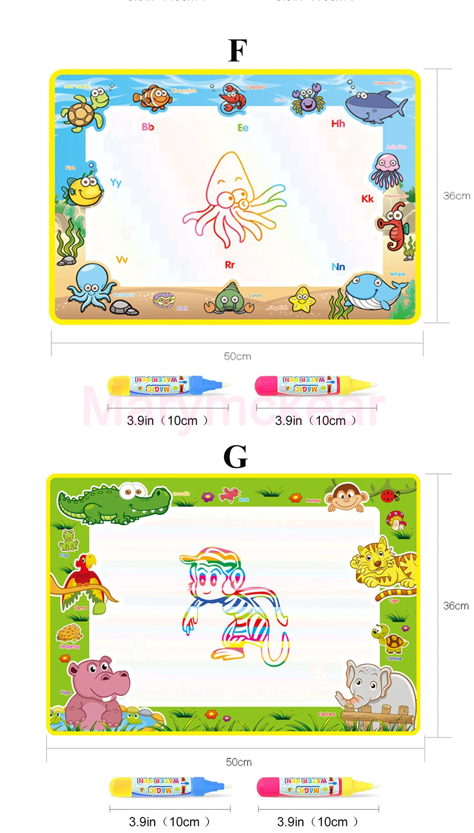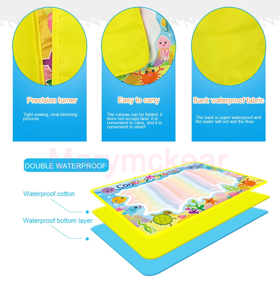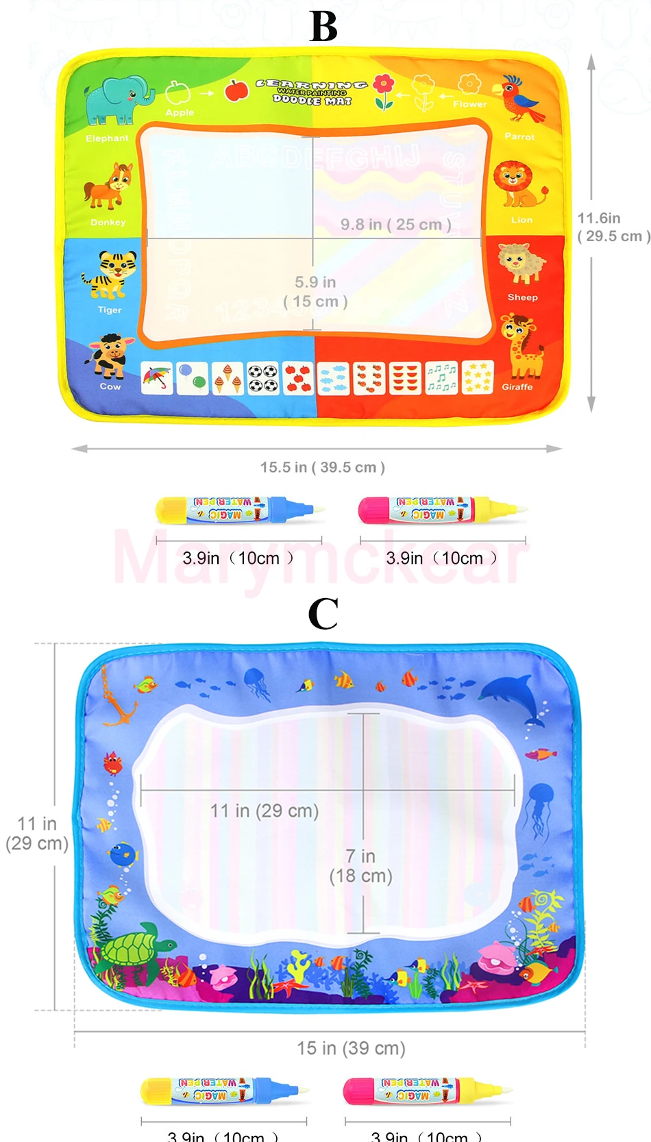 Водный коврик для рисования с 2 ручками, 7 видов стилей многоразового использования, волшебная доска для рисования, подарок для детей, развивающая игрушка для рисования
