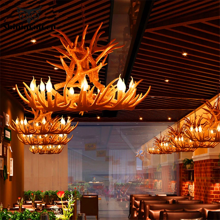 Скандинавская винтажная художественная люстра, американский светильник в стиле лофт для кухни, ретро-лампа в виде рога оленя, роскошная полимерная лампа для спальни, лестницы