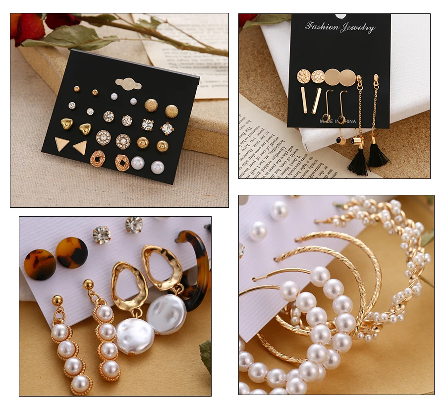 Комплект женских сережек, серьги с жемчугом, богемная бижутерия, ге...
