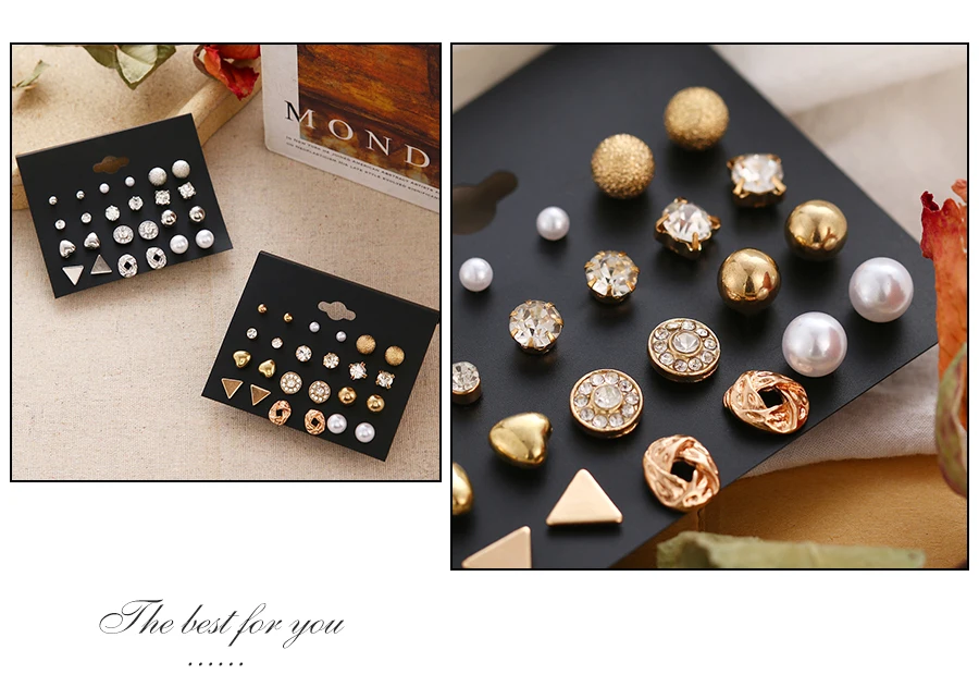 Женские серьги-гвоздики с жемчугом и кристаллами, 12 пар Набор из ц...