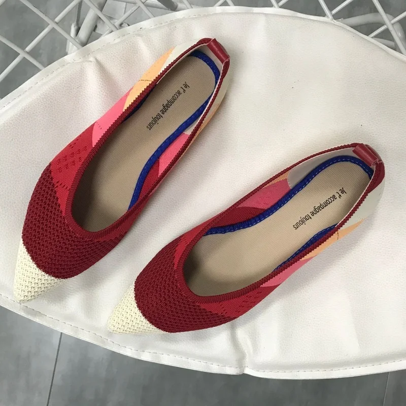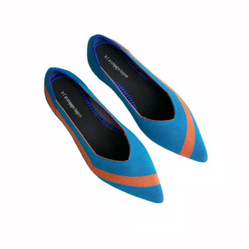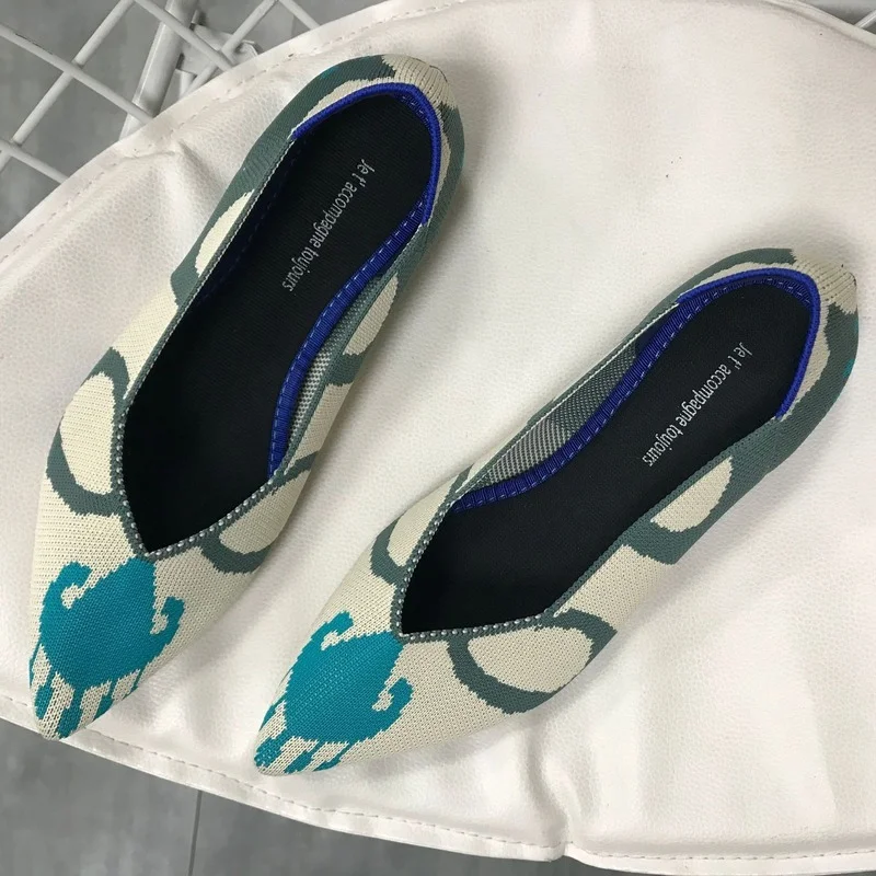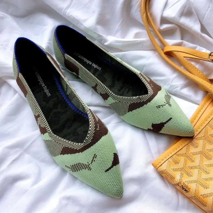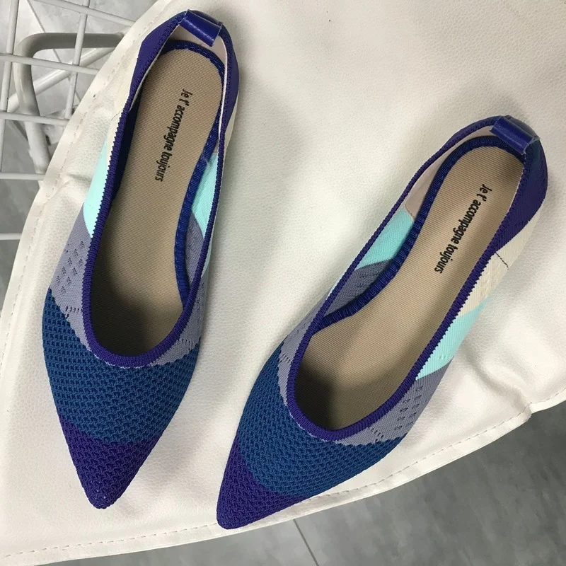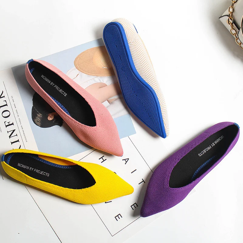 Туфли женские трикотажные эластичные, заостренный носок, плоская подошва, дышащие удобные, для работы, модная обувь для вождения, осень-весна