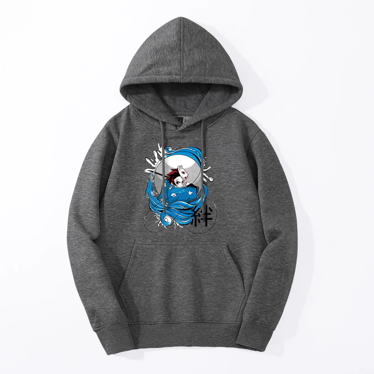 Демон убийца Kimetsu No Yaiba для мужчин худи, толстовка из флиса с капюшоном Осень Зима уличная теплая Повседневная Bonds Япония Аниме Толстовка