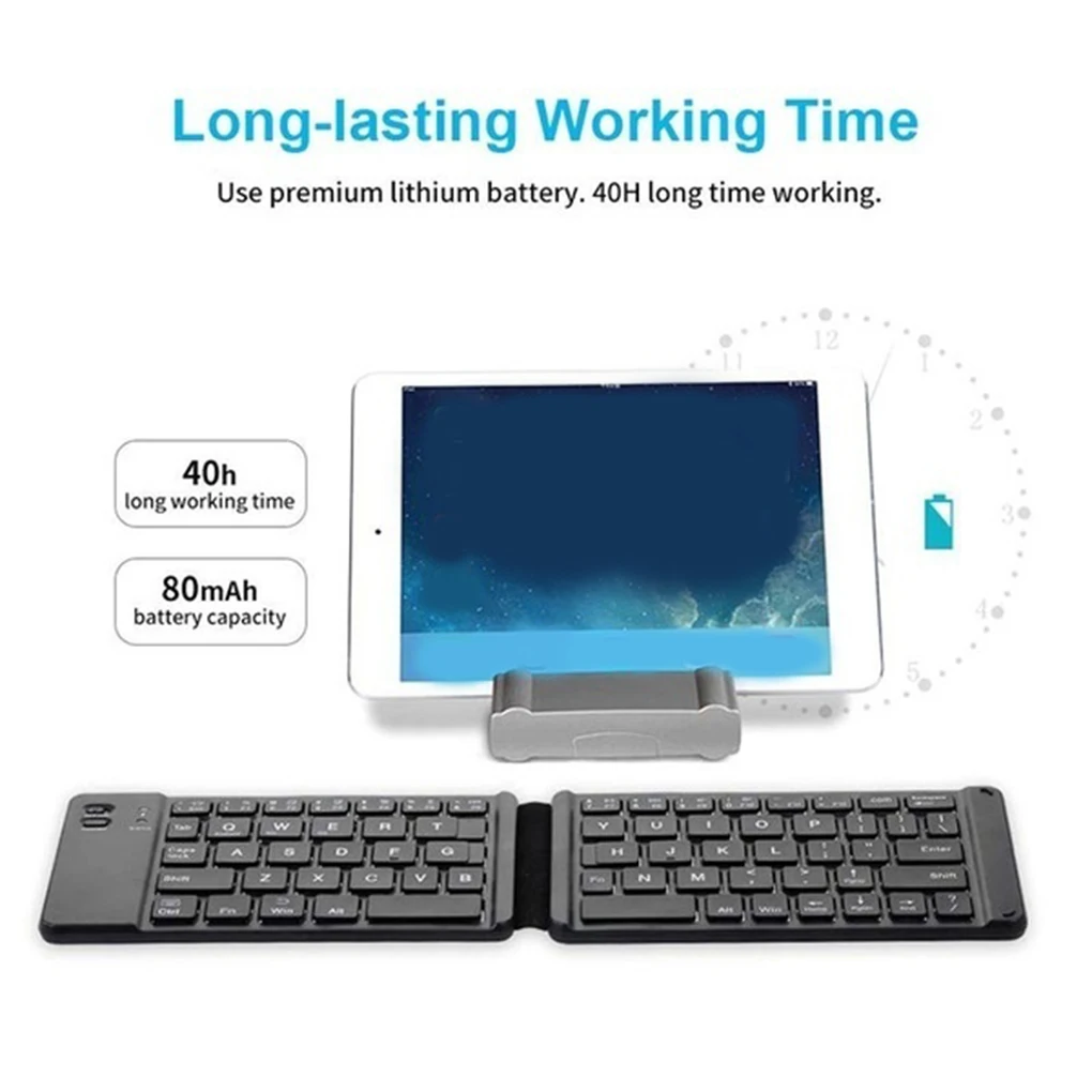 Эта Складная bluetooth-клавиатура оснащена bluetooth 3,0, что обеспечивает стабильное и быстрое соединение.Ключи разработаны с ножницами, удобно использовать и удобно чистить.Совместимость с большинством операционных систем, подходит для работы с компьютером, ноутбуком, планшетом или телефоном.Идеально подходит для деловой поездки, складывается, чтобы сделать его маленьким и чрезвычайно портативным.Встроенная перезаряжаемая батарея, избавит вас от проблем с заменой батареи.