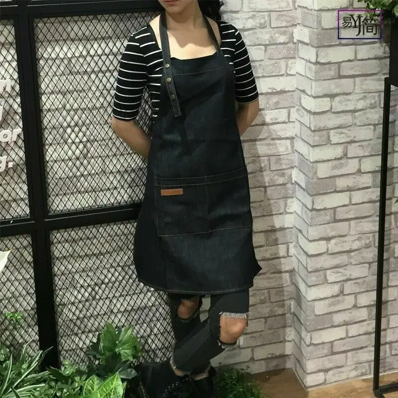 1 шт., 2020, джинсовый фартук унисекс с карманами для мясника, для кухни, приготовления барбекю