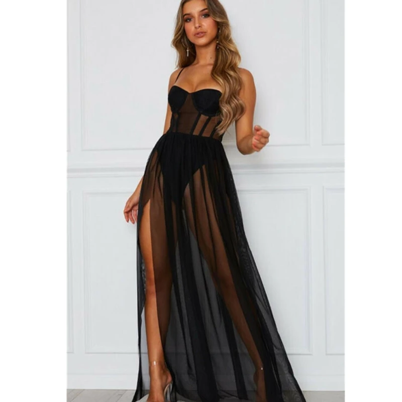 Летний женский сетчатый Марлевое длинное платье, сексуальный комбин...