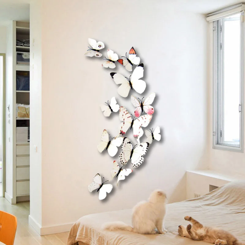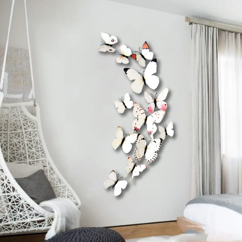3D наклейки на стену в виде бабочек из ПВХ, 12 шт.компл.