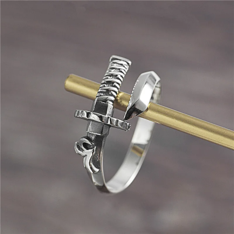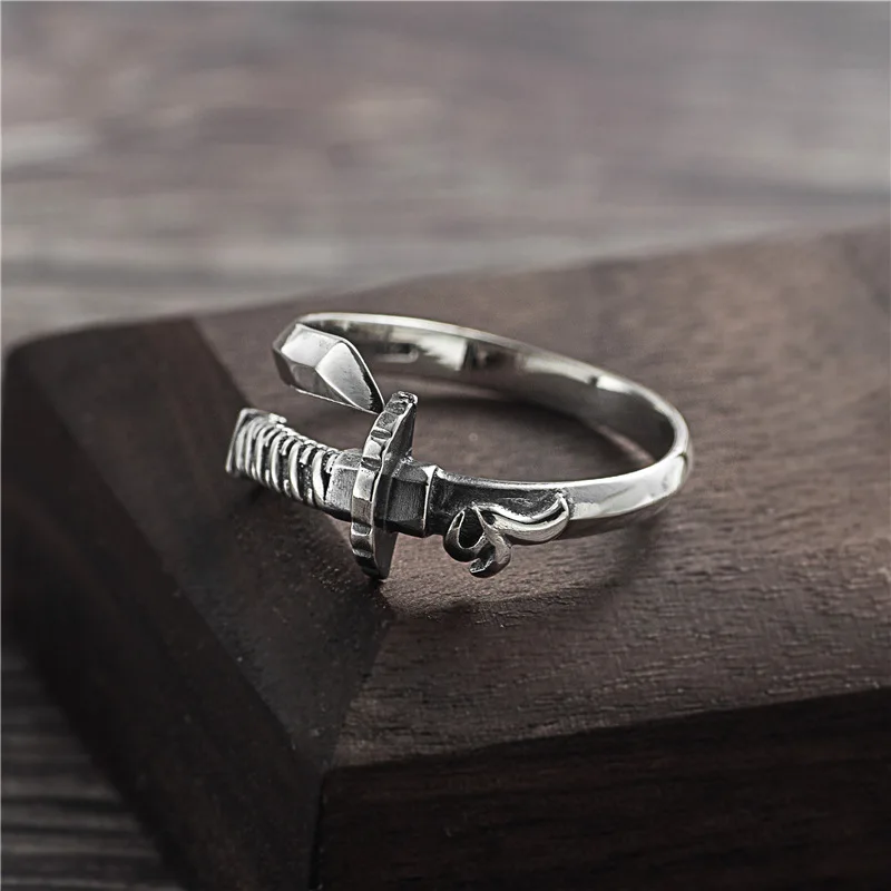 Винтажное кольцо с мечом самурая, Открытое кольцо из стерлингового серебра 925 пробы с изменяемым размером в ретро стиле, оптовая продажа