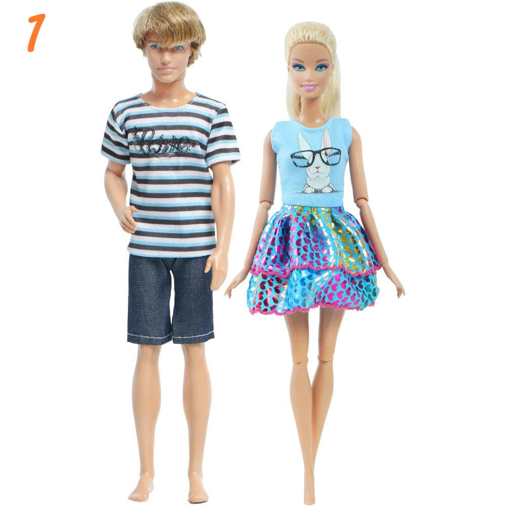 BJDBUS Модный 2 комплекта повседневная одежда костюм для мальчиков, девочек платье аксессуары для пар кукол Одежда для Барби для Кена куклы игрушки