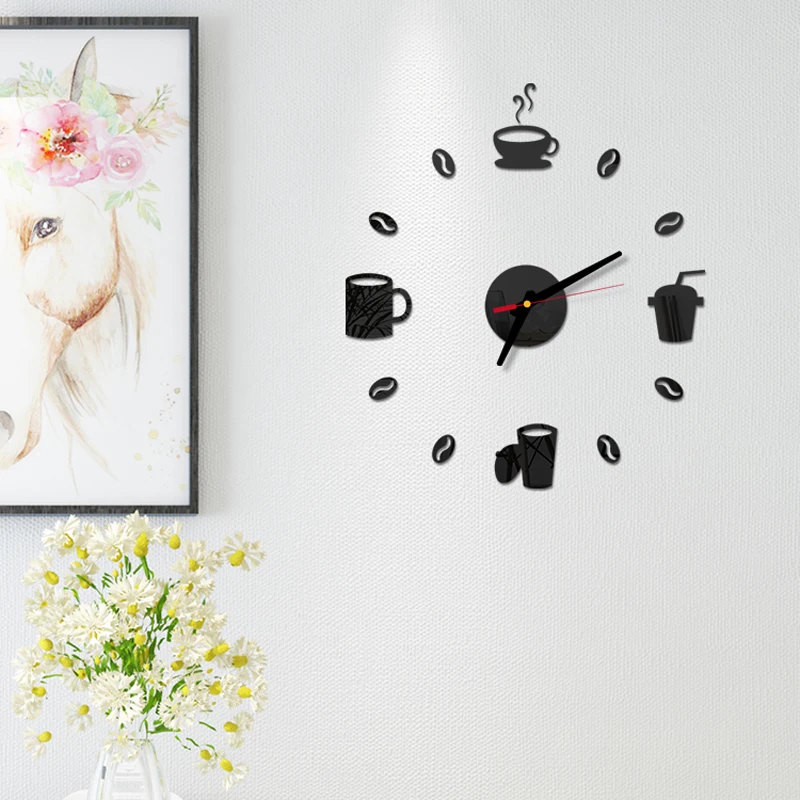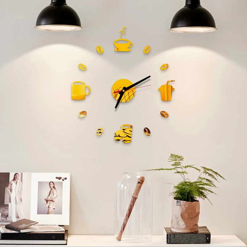 Зеркальные настенные часы, самоклеящиеся современные аналоговые акриловые часы 40 см в диаметре, для кухни, для украшения кофе сделай сам, золотистыеСеребристыечерныекрасные