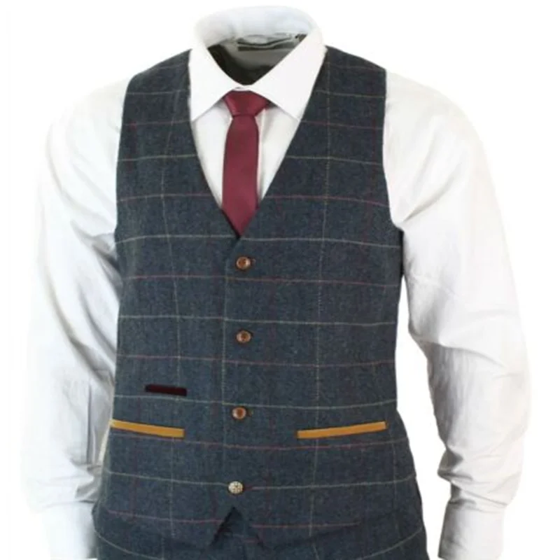 Мужской твидовый костюм в рубчик, темно-синий винтажный костюм из 3 предметов в клетку, костюм Марка Дарси, 2020