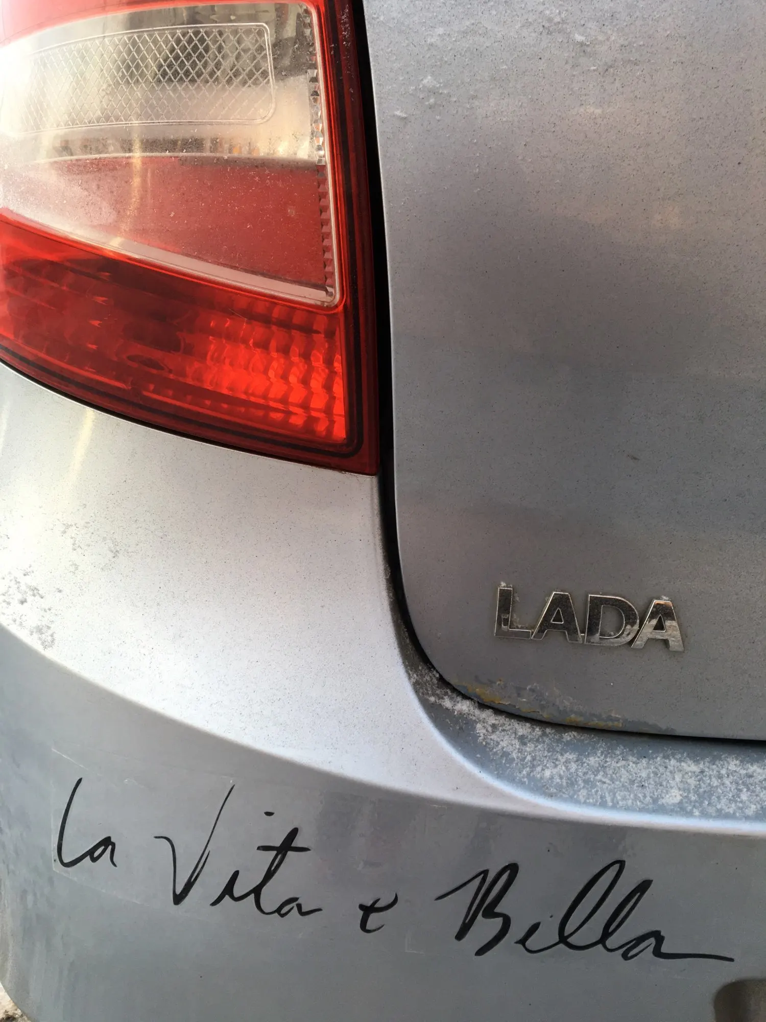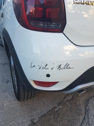 Красная наклейка здорово смотрится !!! Размер побольше на чёрной машине .