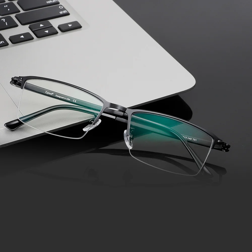 Cyxus анти-синий светильник, компьютерные очки для снятия напряжения глаз, полупрямоугольный светильник, весовая оправа для мужчин и женщин, очки 8003