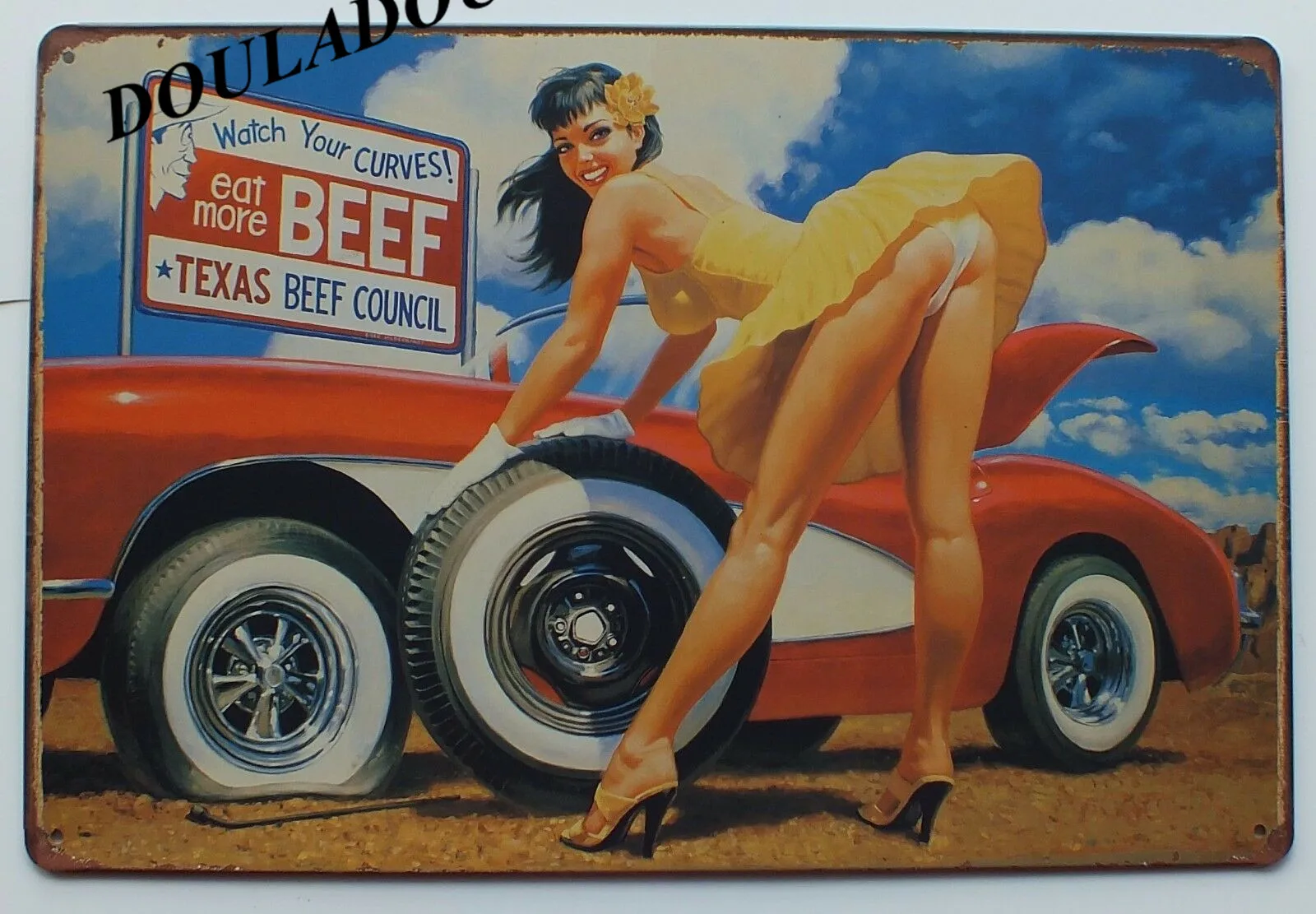 Винтажные металлические жестяные знаки для сексуальных девушек, дек...