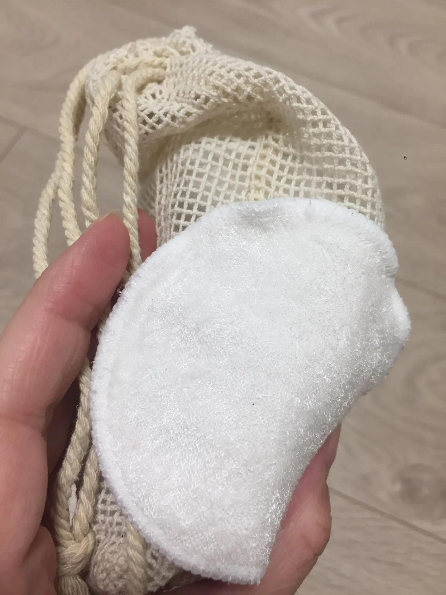 Приятные на ощупь диски, очень мягкие. По размеру больше, чем стандартный ватный диск, пришли в сетчатом мешочке на завязках