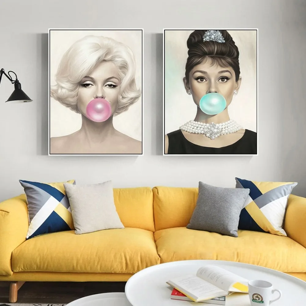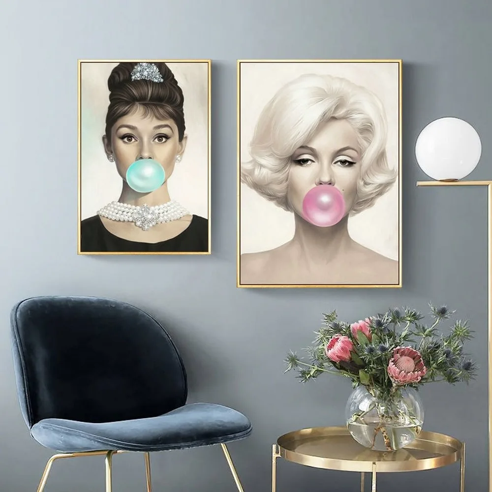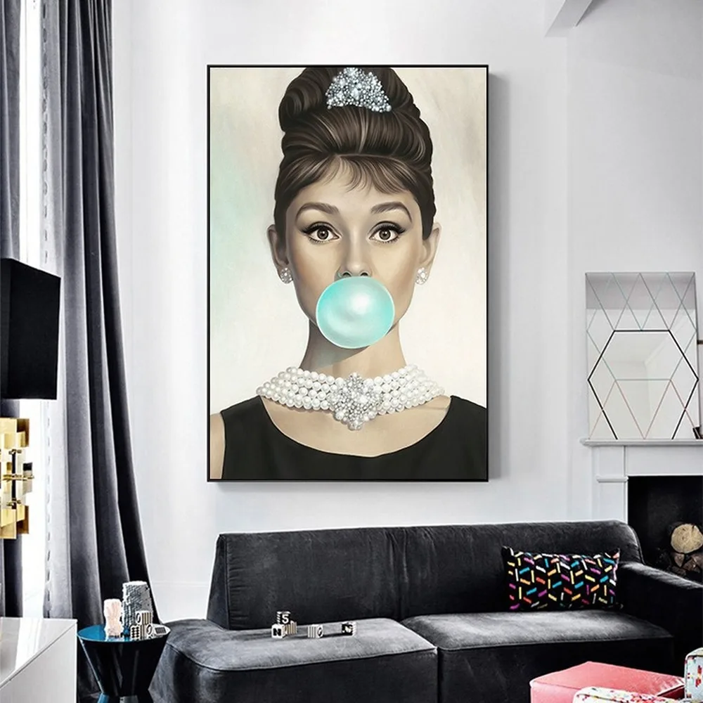 Ретро ностальгическая Женская звезда персонаж Холст Картина Мэрилин Монро Одри Хепберн воздушные шары постеры крыльцо спальня роспись картины