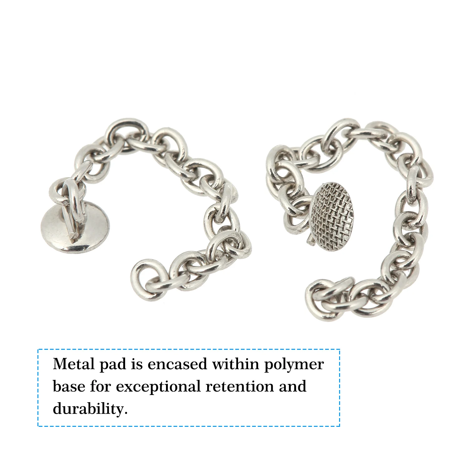 Металлическая накладка встроена в полимерное основание для исключительного удержания и долговечности.
