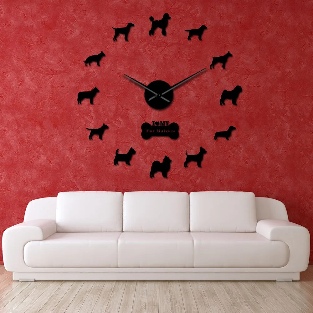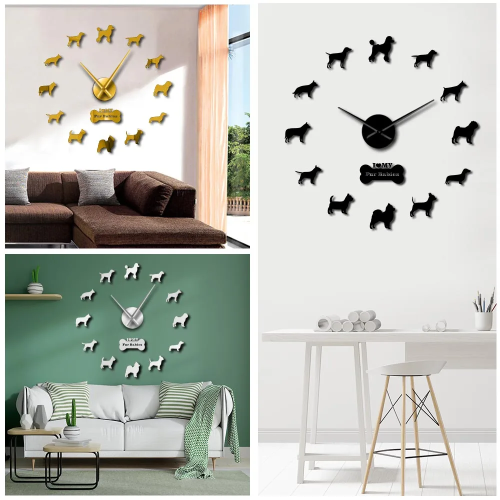 Доберман Померанский Ротвейлер Пудель питбуль Сибирский хаски Джек Рассел популярный микс пород собак 3D DIY настенные часы щенок домашний декор