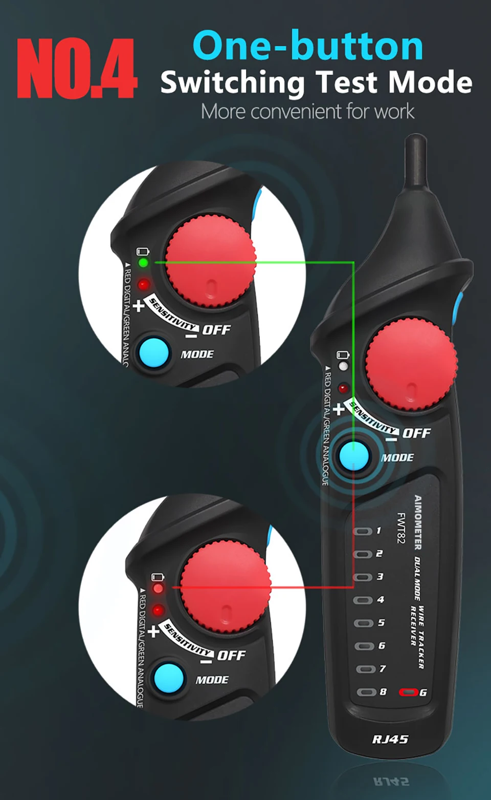 -Проверьте сортировку сетевого кабеля в течение 3 с. -Высокая эффективность переключатель функций двойная ручка дизайн, обе руки могут управлять передатчиком или приемником независимо, что может сэкономить ваше время по сравнению с другими проводами трекера, которые требуют обе руки.
