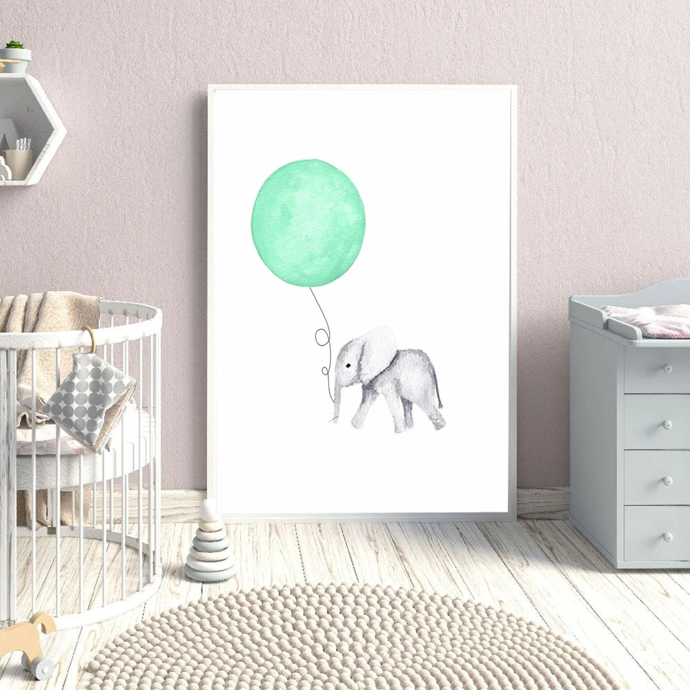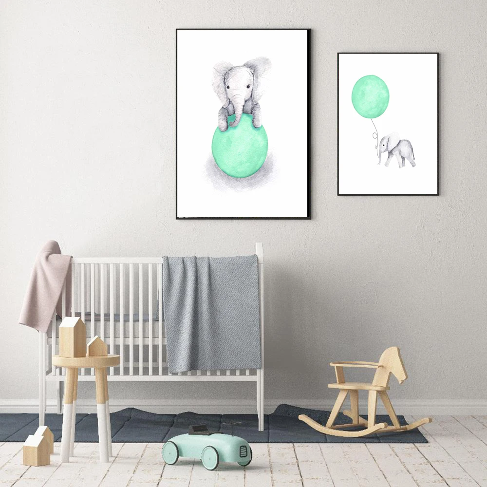 Фотография детской комнаты, Картина на холсте, животные, зеленый мята, воздушный шар, сердце, плакаты, картины, домашний декор для детской комнаты