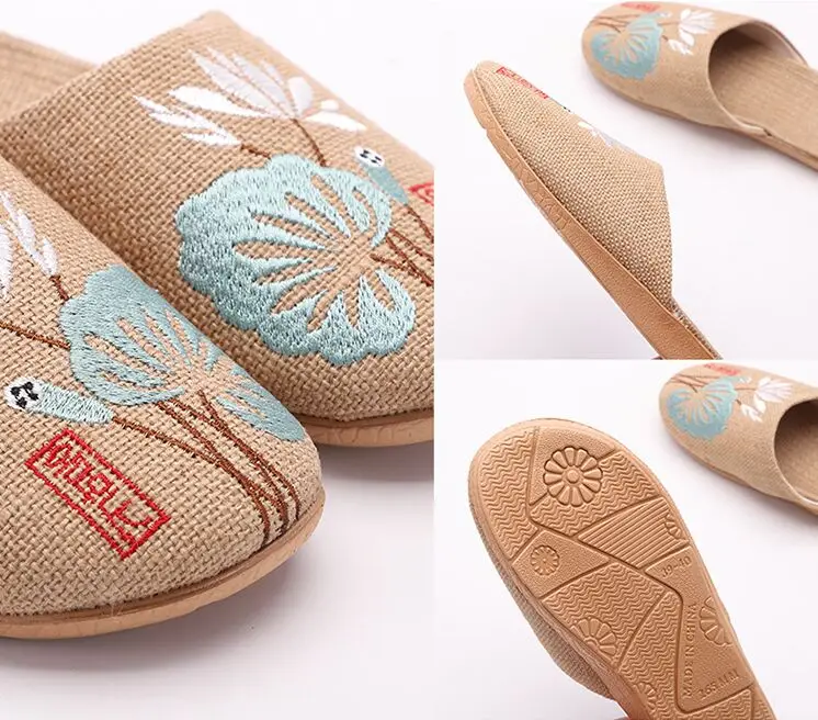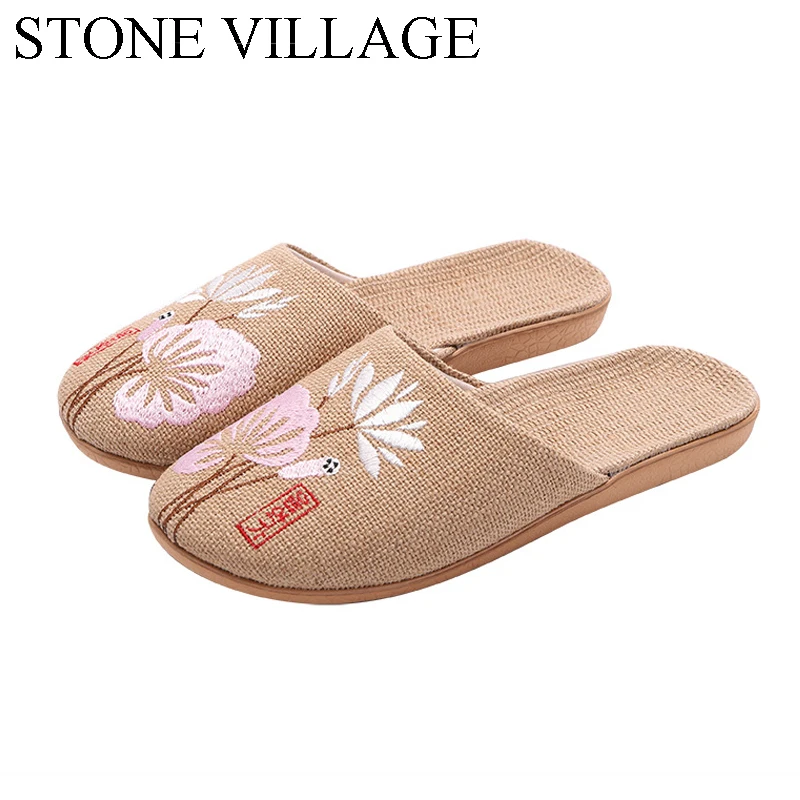 Японские льняные тапочки с вышивкой STONE VILLAGE, мужские всесезонные дышащие Нескользящие конопляные тапочки из ЭВА и вискозы для женщин