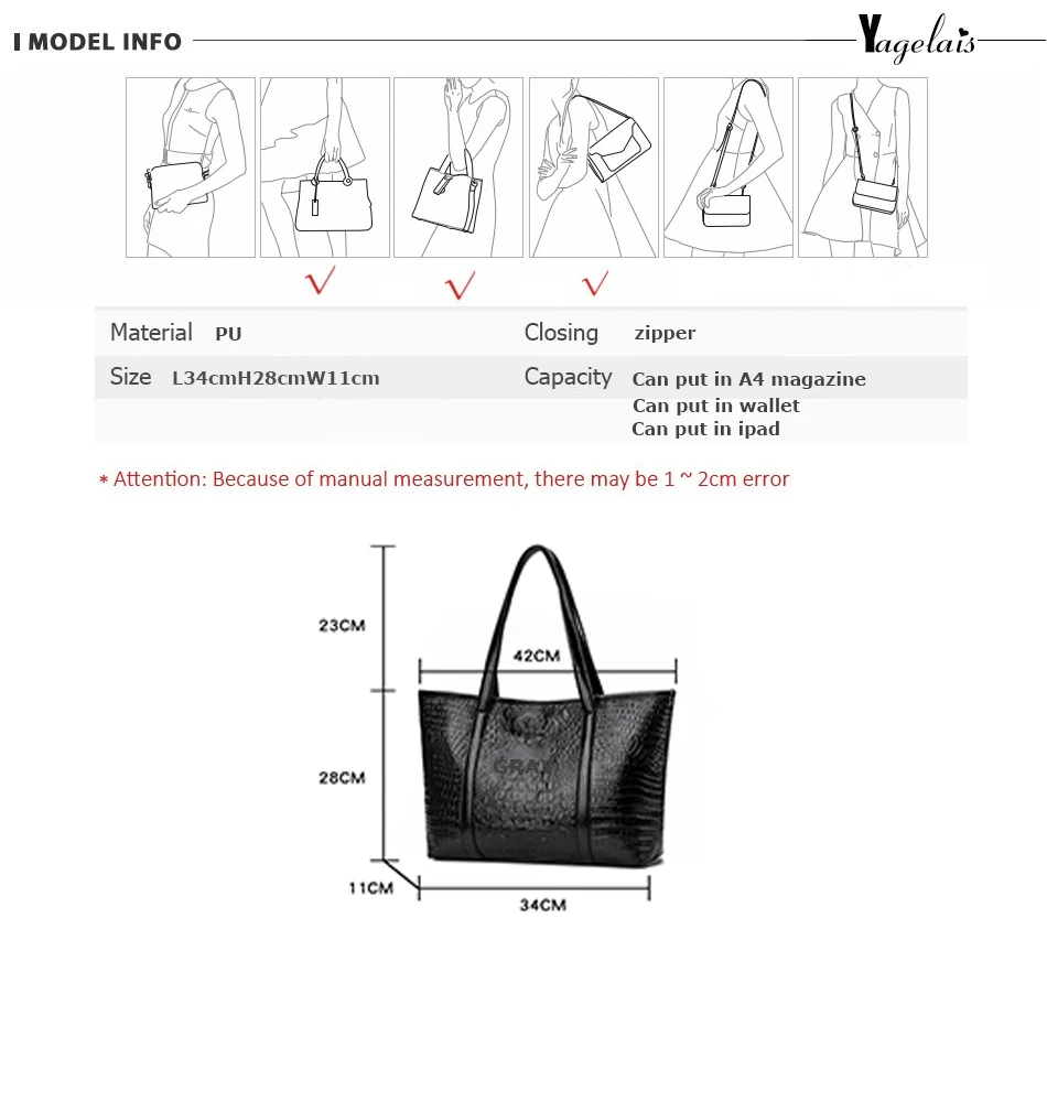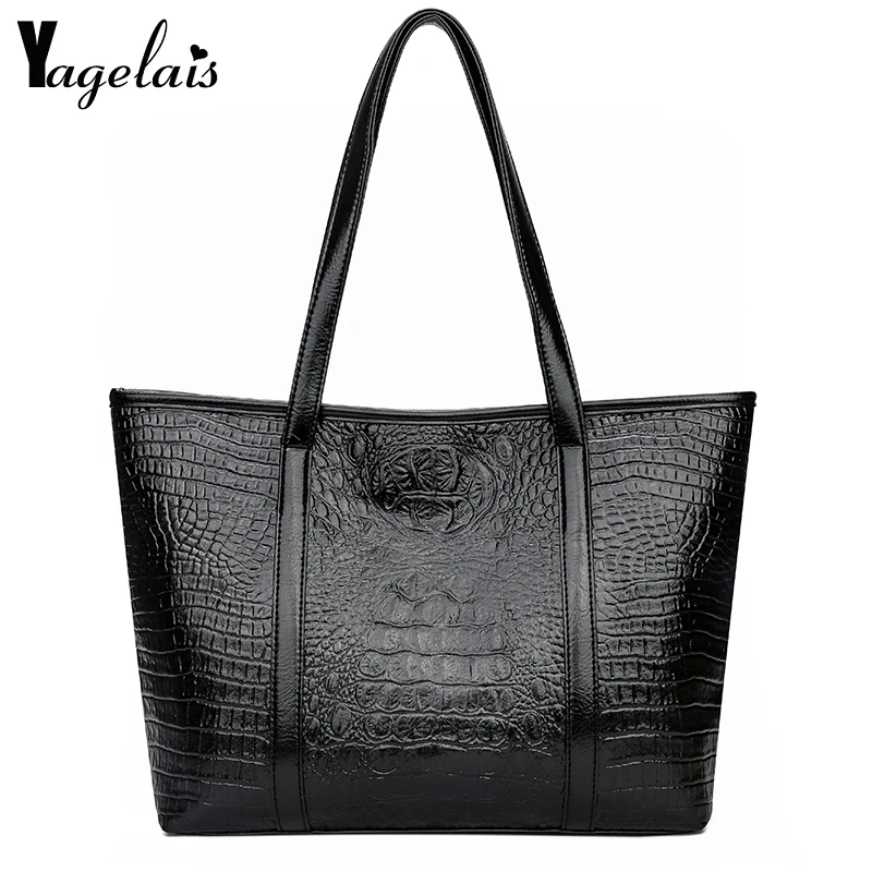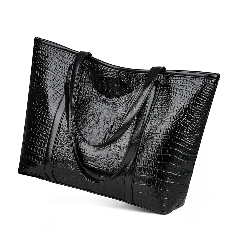 Женская сумка-тоут, из крокодиловой кожи, блестящая, вместительная, сумка через плечо из искусственной кожи