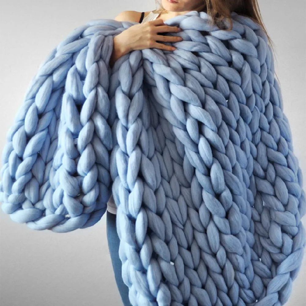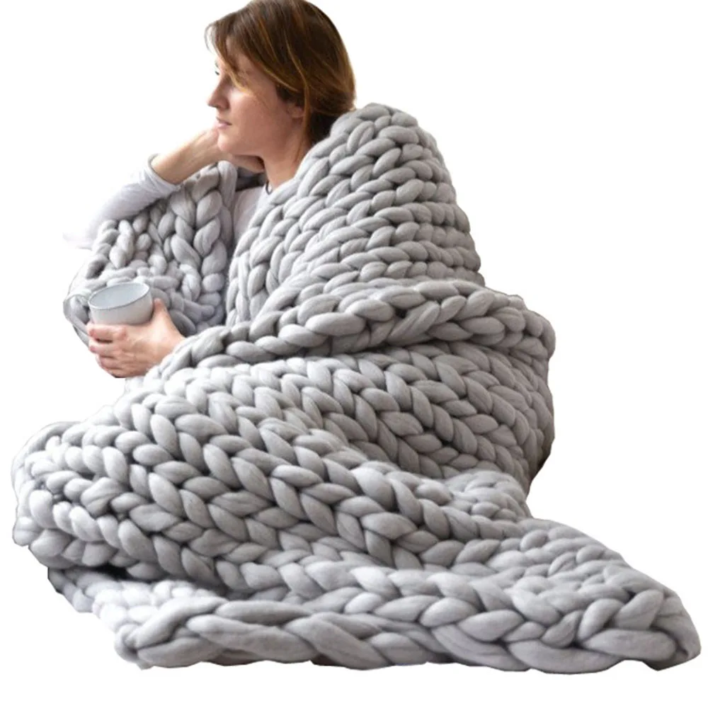 Модные одеяло крупной ручной вязки из толстой пряжи из искусственного меха полиэстер громоздкий вязаный одеяла зимние мягкие теплые пледы