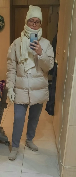 Как же это все воняет, боже мой. Написано бежевый, по факту слоновая кость с розовыми нитками. Носить можно, но у меня 3/4 человек в семье не могут переносить этот запах (стирали 2 раза, висит на балконе). Тоненькое все такое, на осень пойдет. На зиму, тем более сибирскую нет.