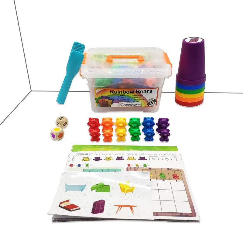 Идеальный счетчик мишки с штабелирование чашек набор-Монтессори Радуга, подходящая для игры, развивающие Цвет сортировки Игрушки для малышей