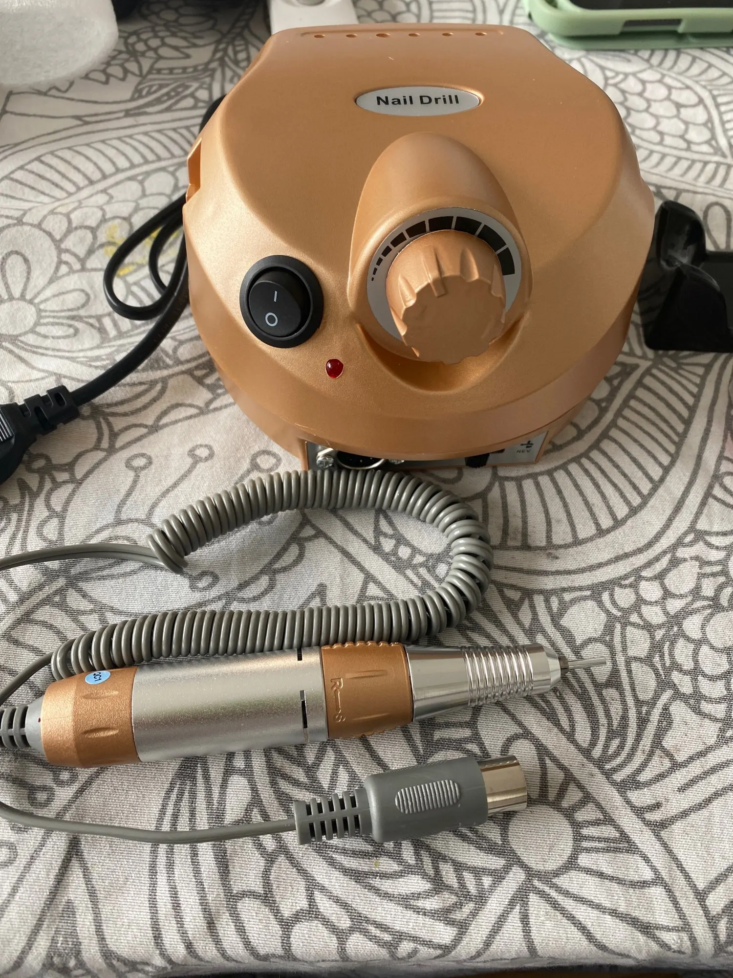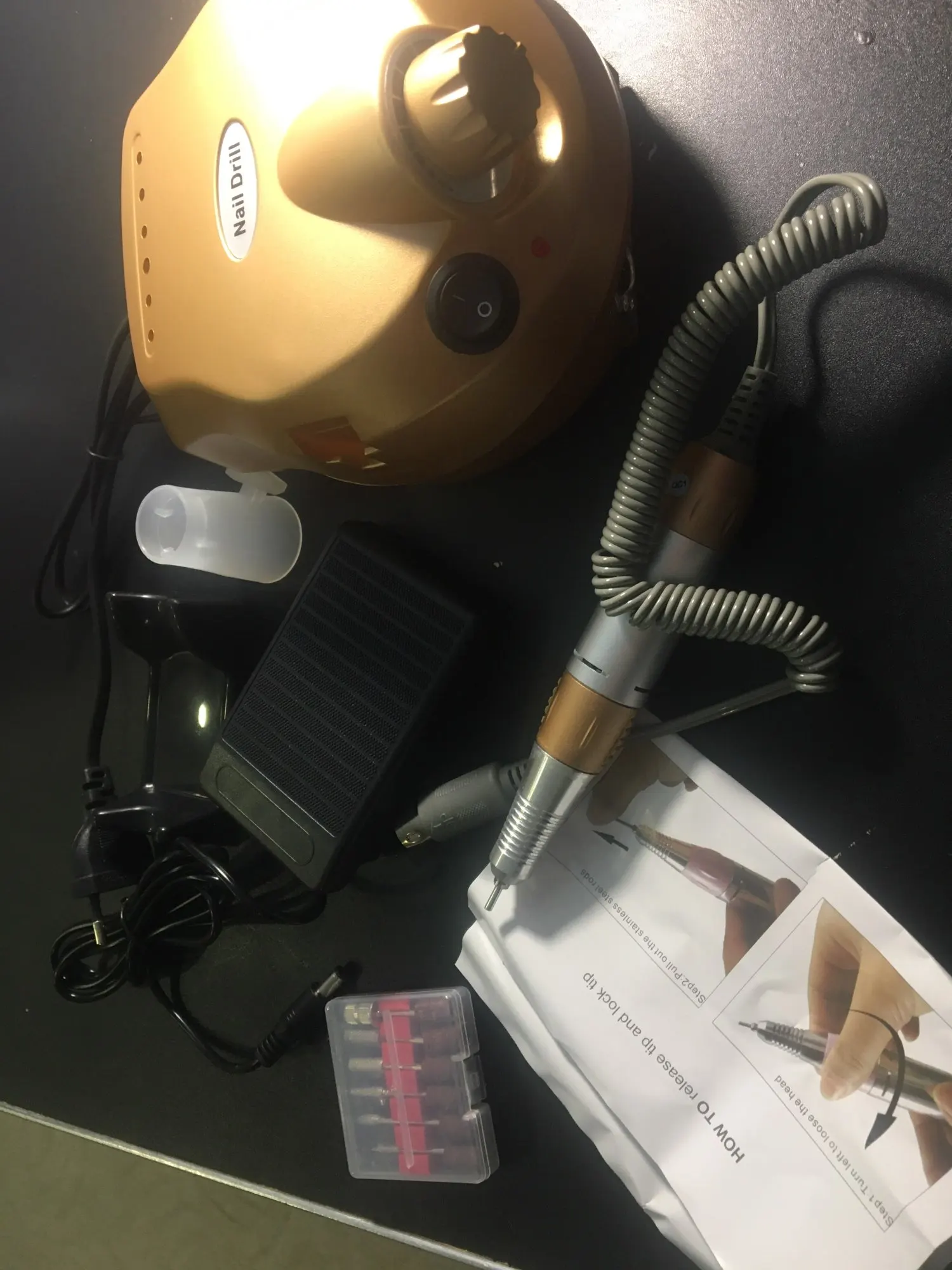 Аппарат за эти деньги достойный. Все работает. Во время использования педали, есть возможность менять обороты. Фрезы в наборе для начала вполне рабочие. Для домашнего использования самое то. Единственное очень долгая доставка, два месяца. Надеюсь прослужит долго