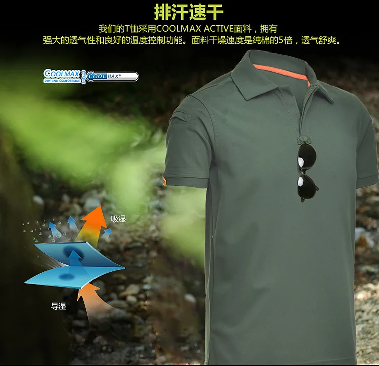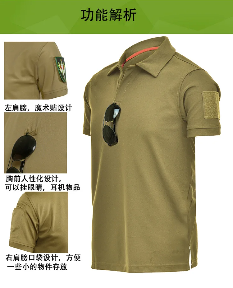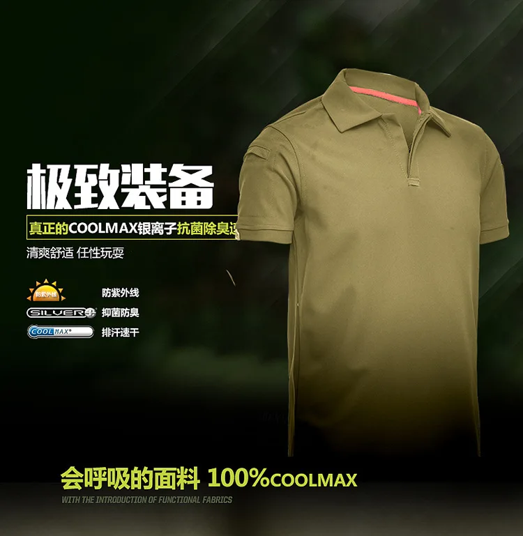Футболка мужская тактическая, хлопок, быстросохнущая, с отложным воротником, с короткими рукавами, в стиле милитари, для охоты, походов, летняя, свободная футболка