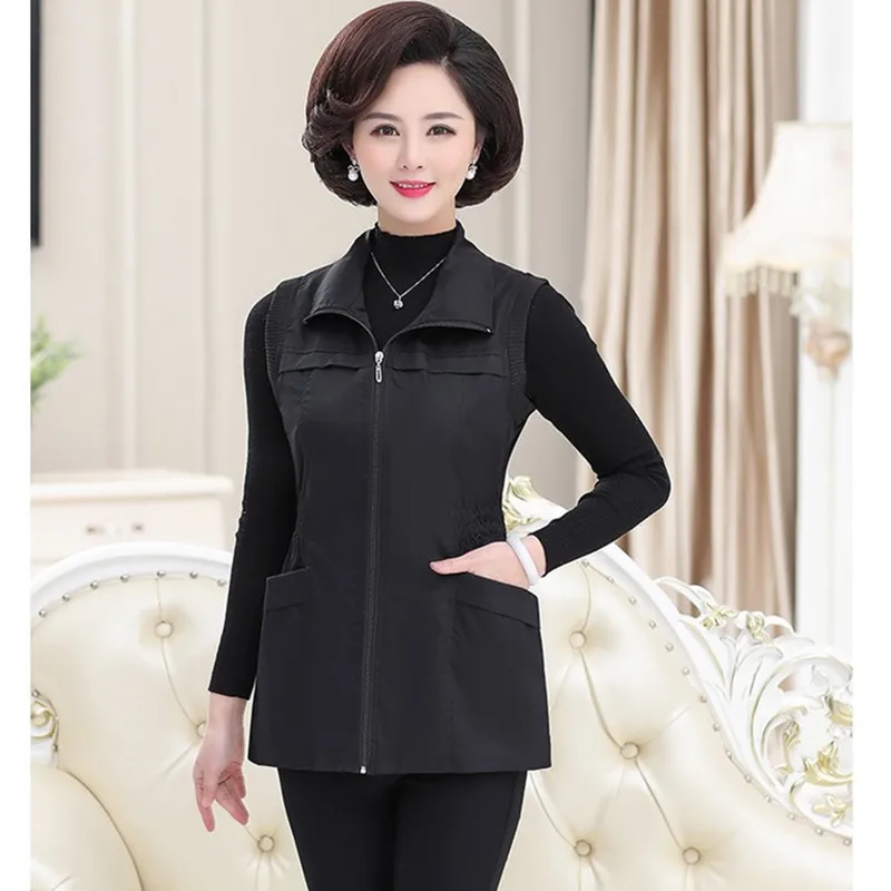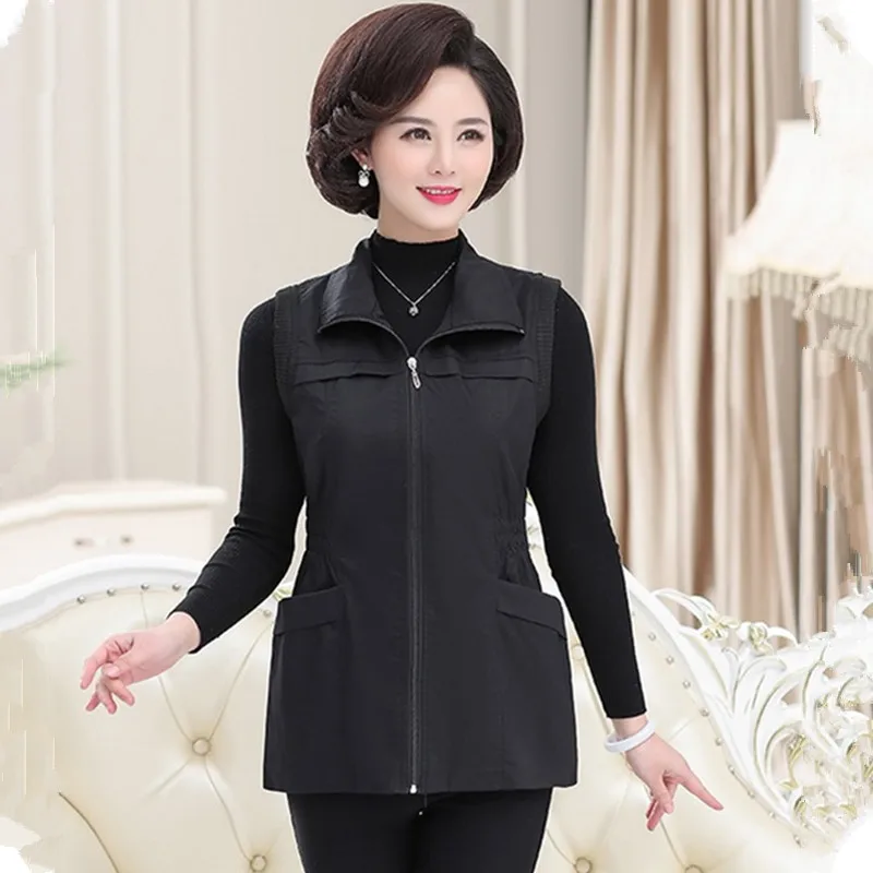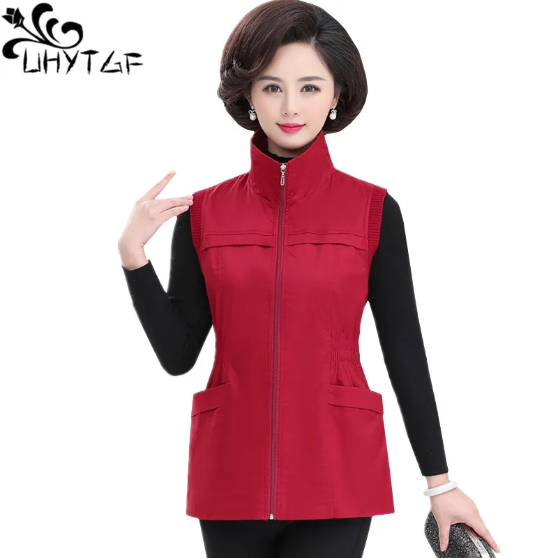 Жилет UHYTGF Женский, модный жилет средней длины на молнии, тонкий размера плюс жилет со стоячим воротником, 4XL, весна-осень, 590