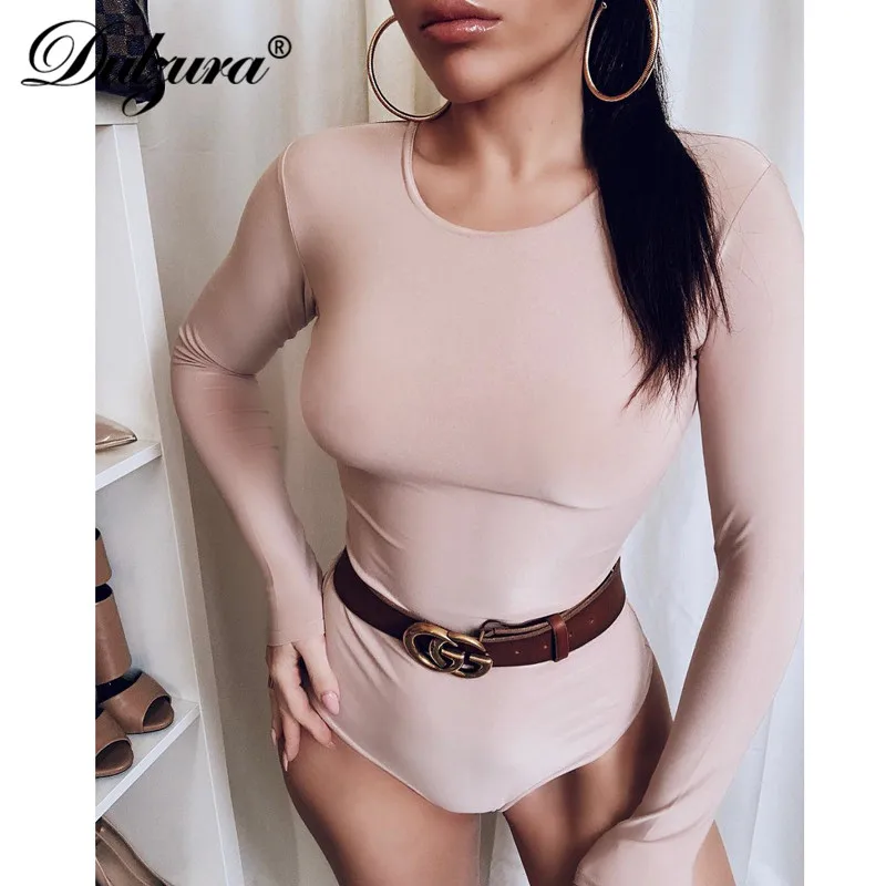 Женское боди из хлопка, с длинным рукавом и круглым вырезом, Осень-зима 2019