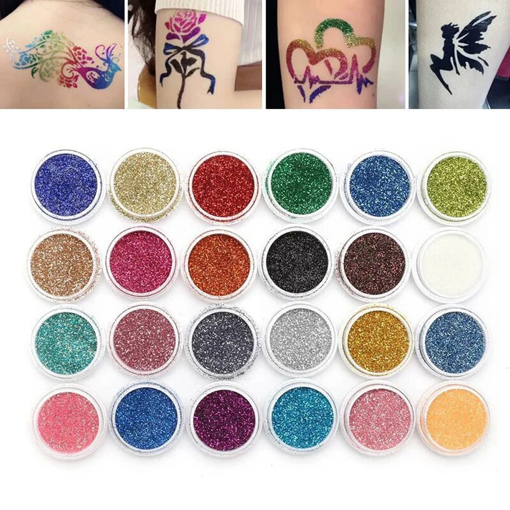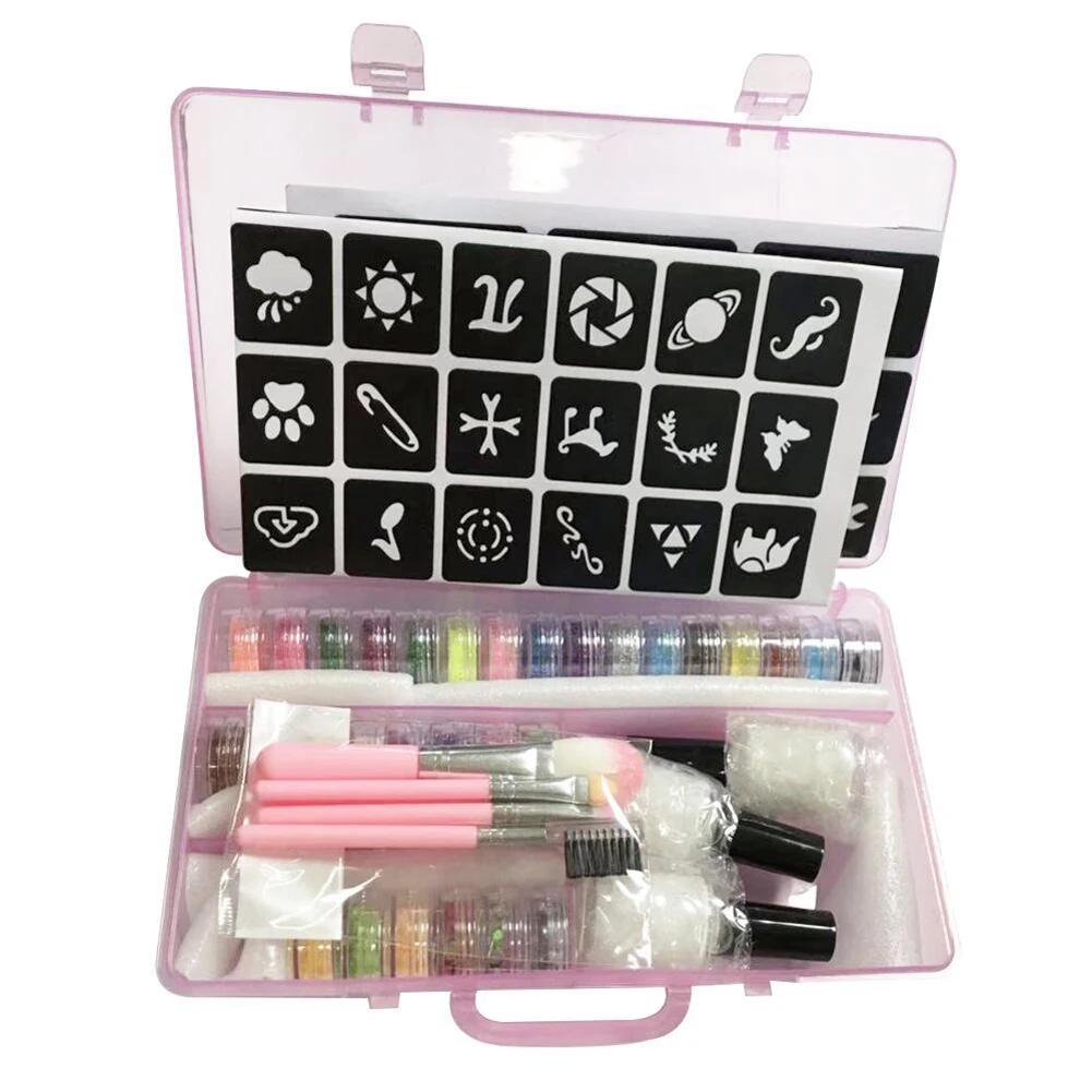 30 цветов Алмазная вспышка блестящая пудра шаблон тату набор 60 флэш-шаблонов набор для взрослых детей лицо боди-арт живопись макияж