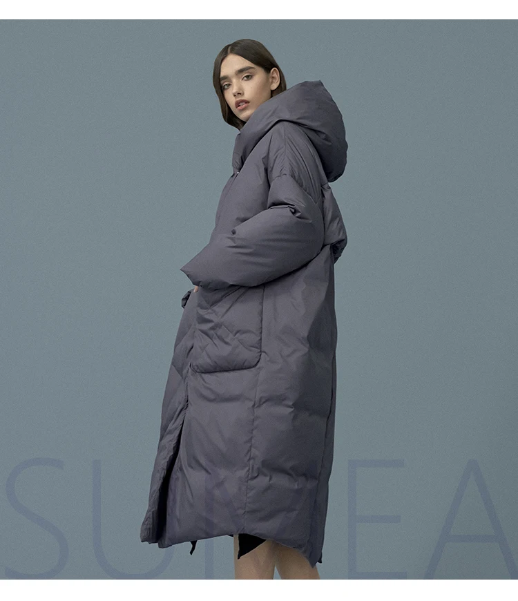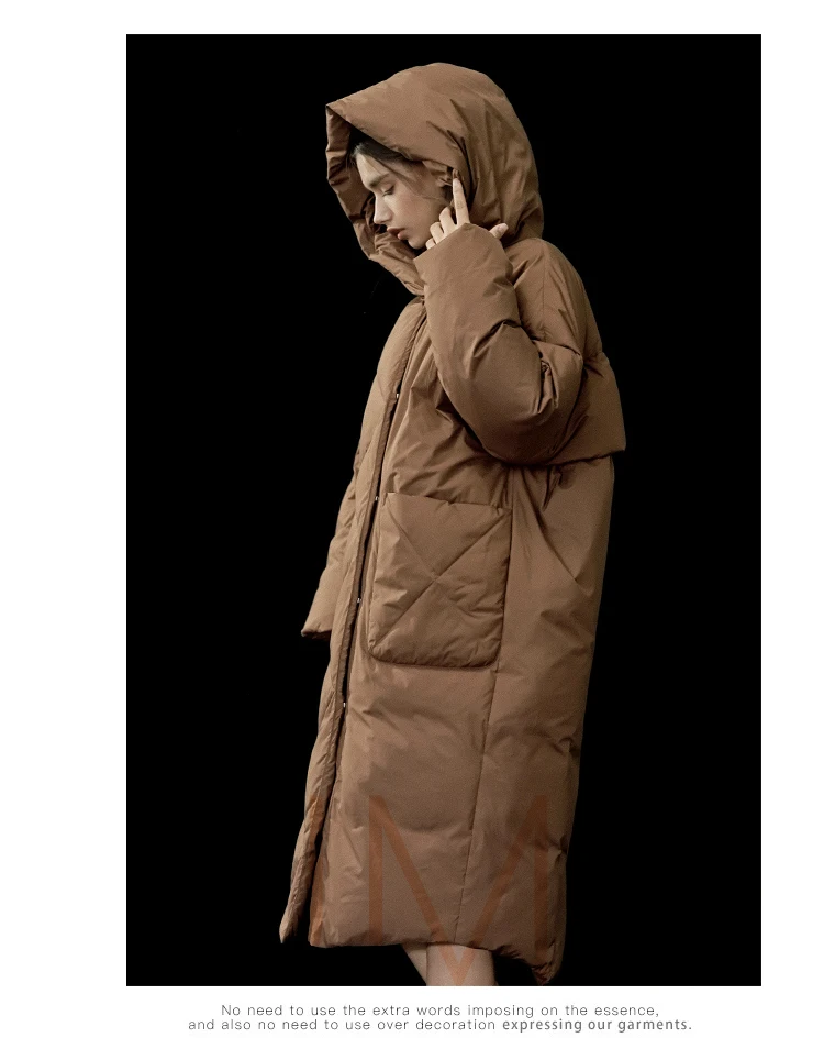 Куртка женская зимняя на белом утином пуху, с капюшоном, большого размера, однотонная, теплая, 2020