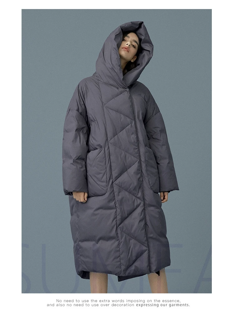 Зимнее женское пальто-кокон на утином пуху, Размеры S- 7XL