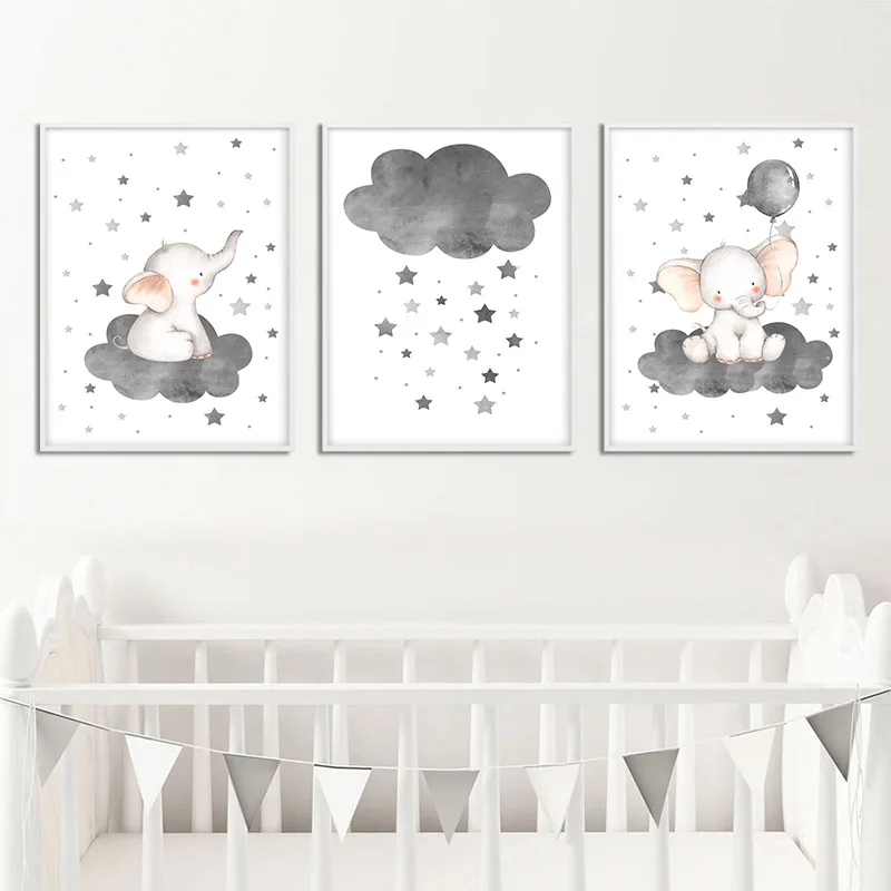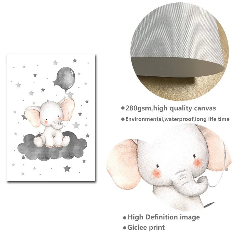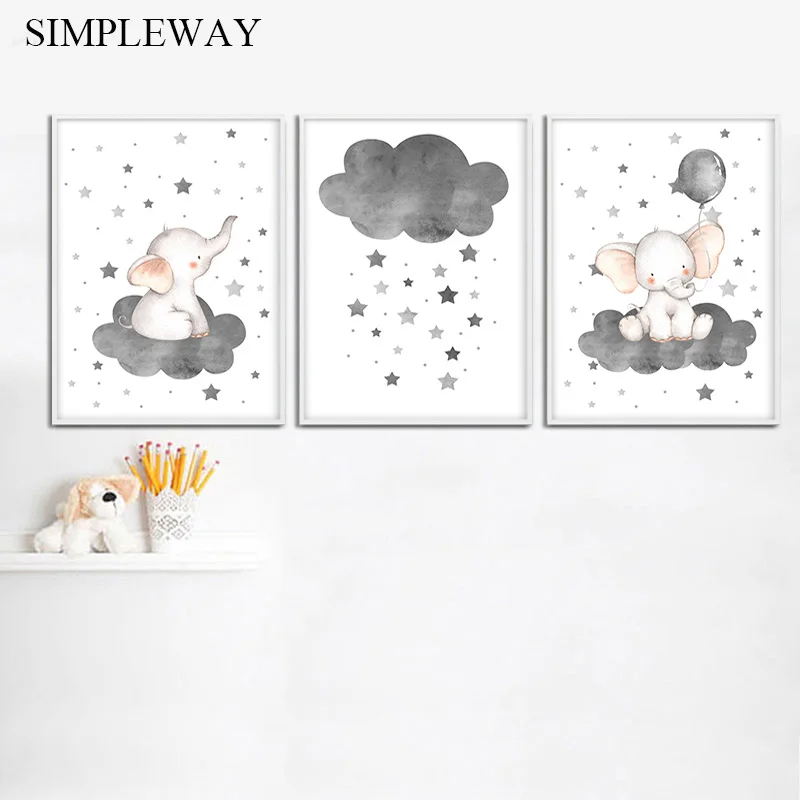 Постер с изображением слона, воздушных шаров, облаков, животных, картина на стену, Картина на холсте, скандинавский стиль, украшение для детской спальни