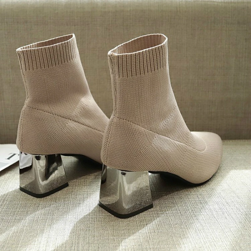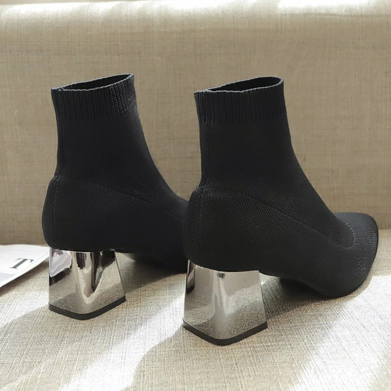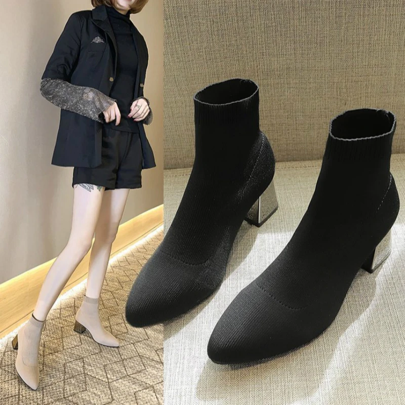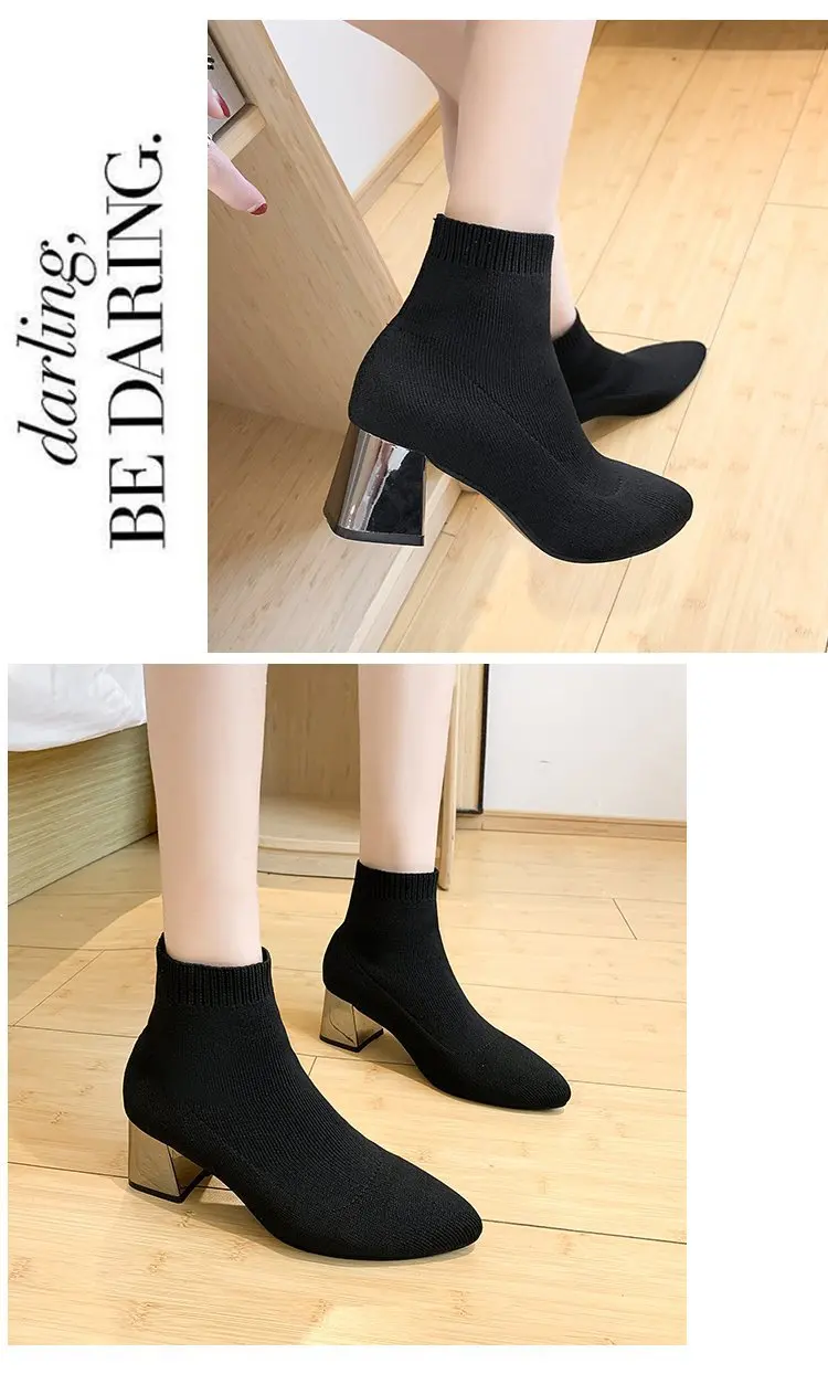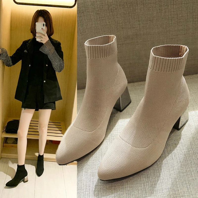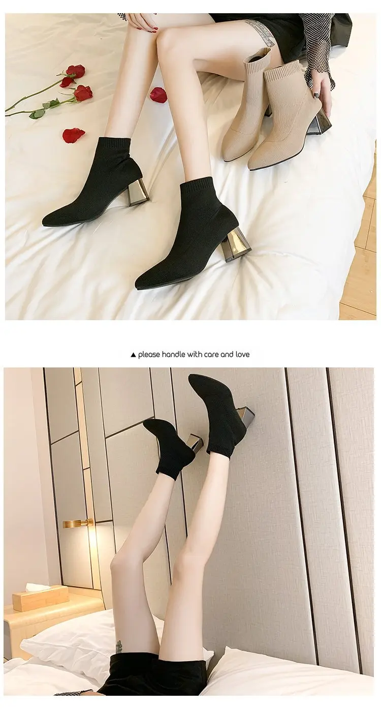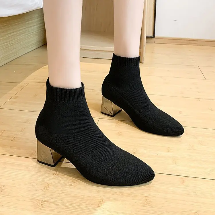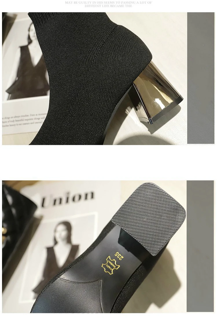 Женские ботинки со шнуровкой, из эластичной ткани, на высоком каблуке, с острым носком, 2020