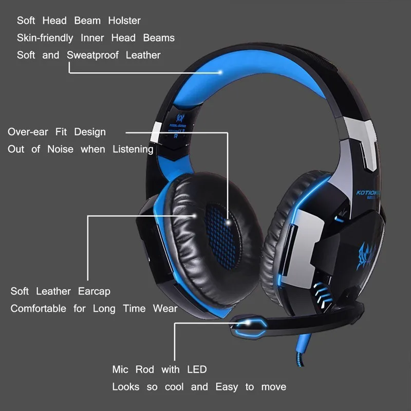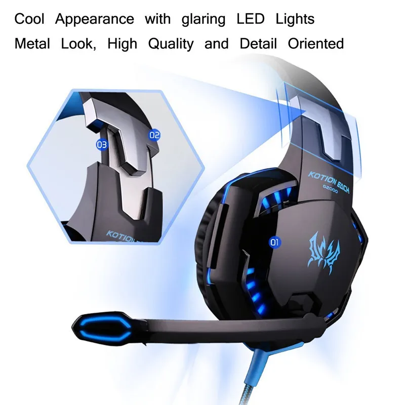 Каждый G2000-профессиональная игровая гарнитура для компьютерных игр. Характеристики 50 мм супер большой блок драйвера, обеспечивает чистый звук и глубокие басы. Светодиодный светильник s спроектирован с эффектом крутой светильник на амбушюрах, что делает его более модным и потрясающим. Интеллектуальный линейный регулятор громкости позволяет вам свободно корректировать и больше фокусироваться на игре. Скрытый дизайн микрофона, более удобный чехол, вам не нужен микрофон.
