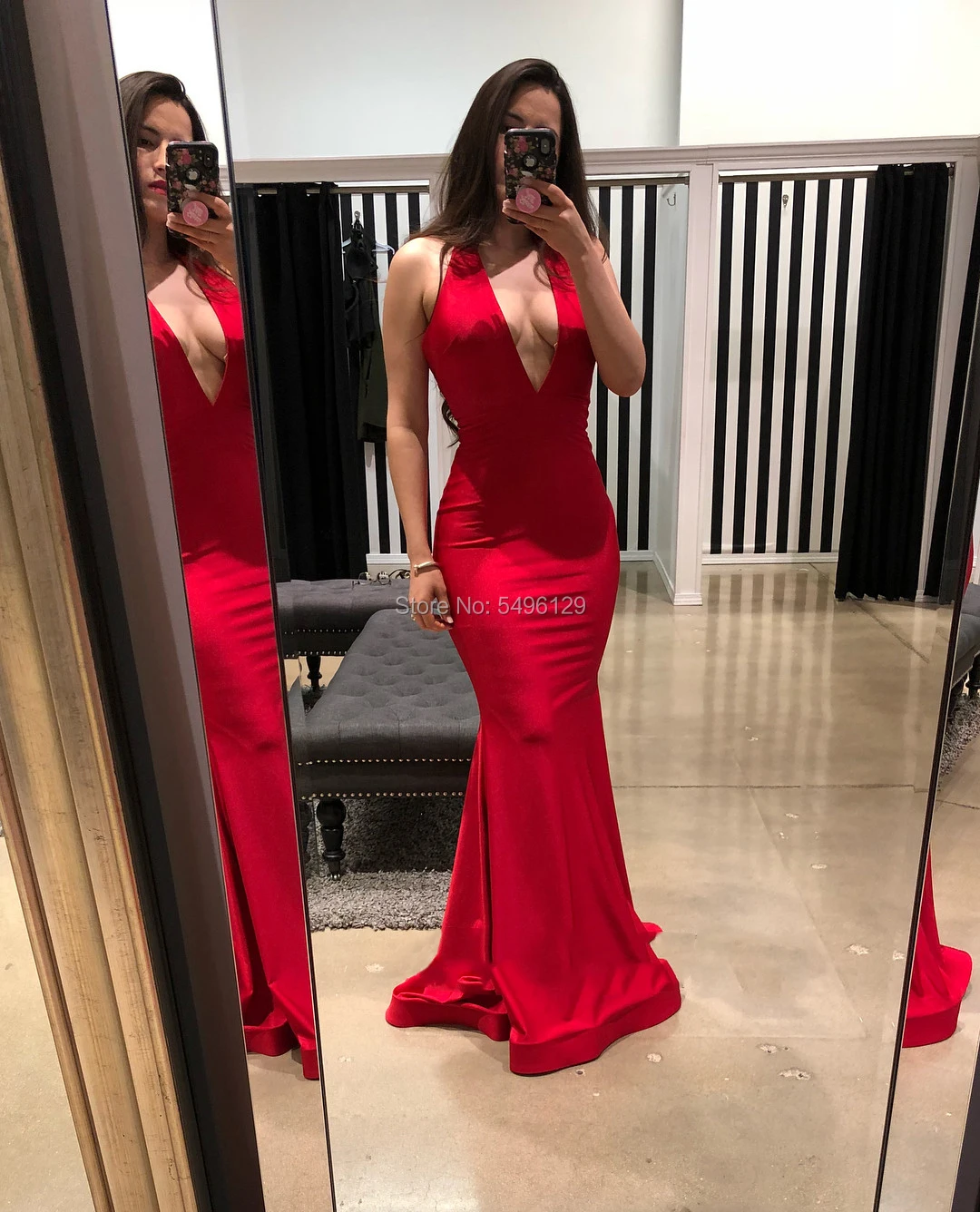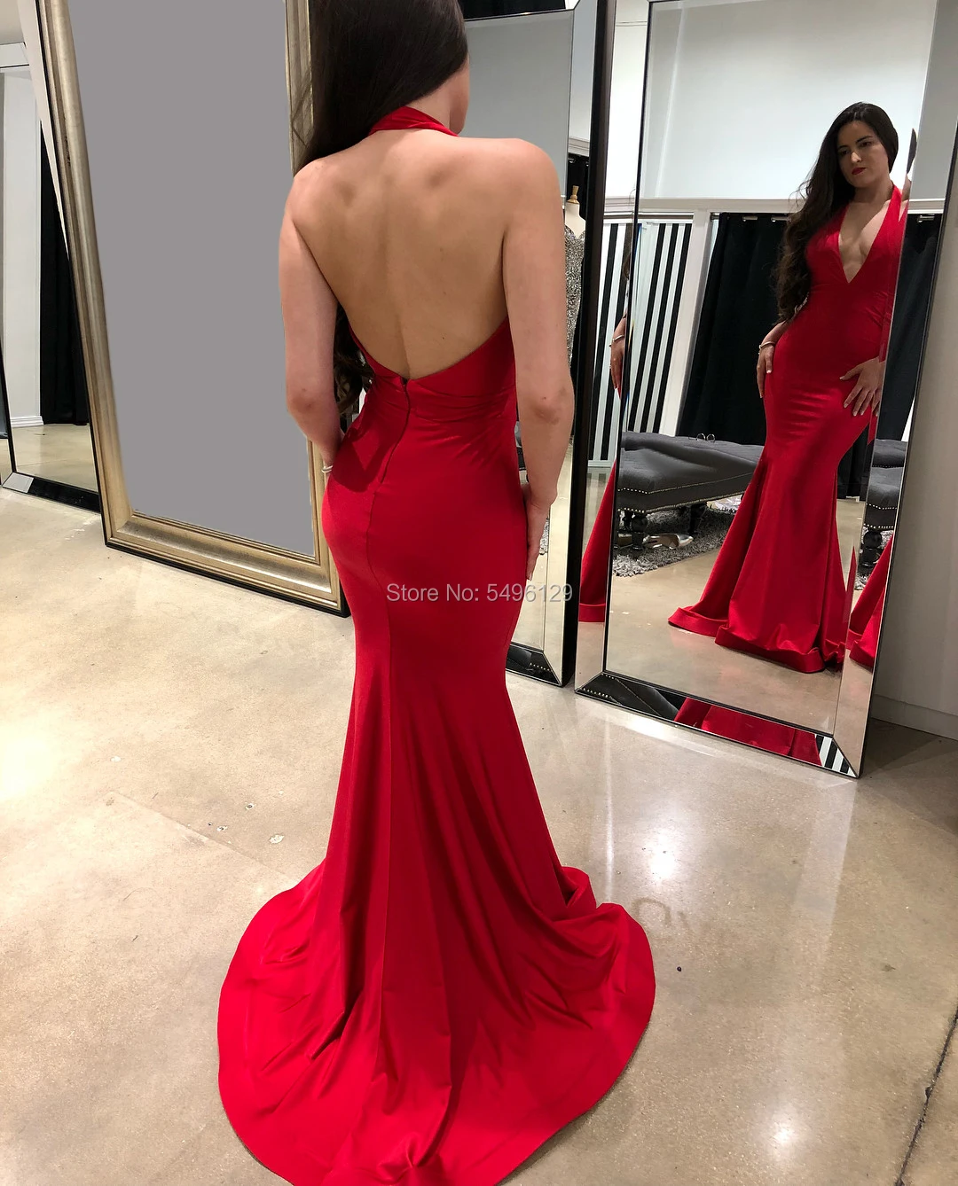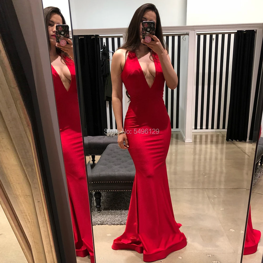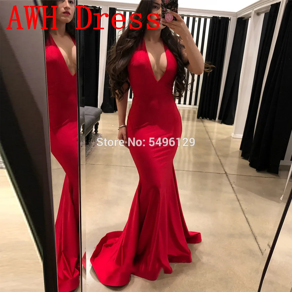 Сексуальные вечерние платья с глубоким v-образным вырезом, платье русалки с лямкой на шее, длинное платье 2020 с открытыми плечами, эластичные атласные вечерние платья с открытой спиной