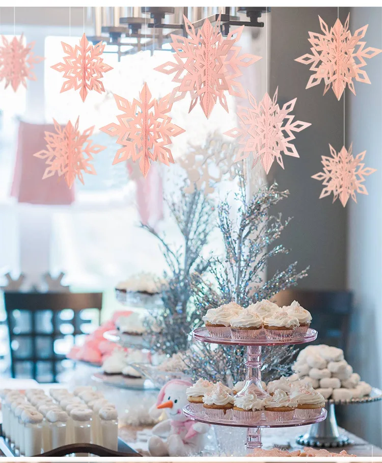 6 шт.компл. WhitрозовыйЗолотой картон трехмерная Снежинка подвесной...