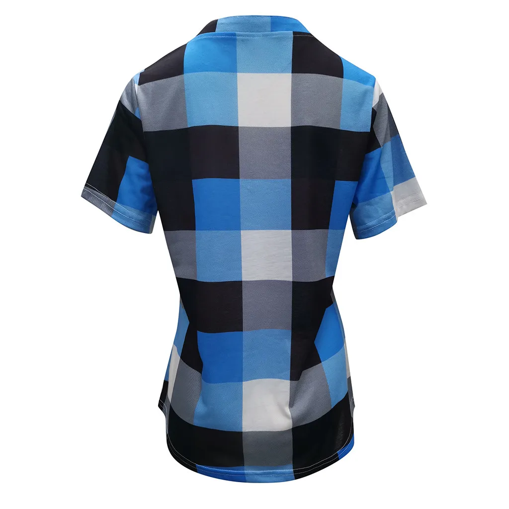 Футболка женская хлопковая в клетку, с коротким рукавом и V-образным вырезом