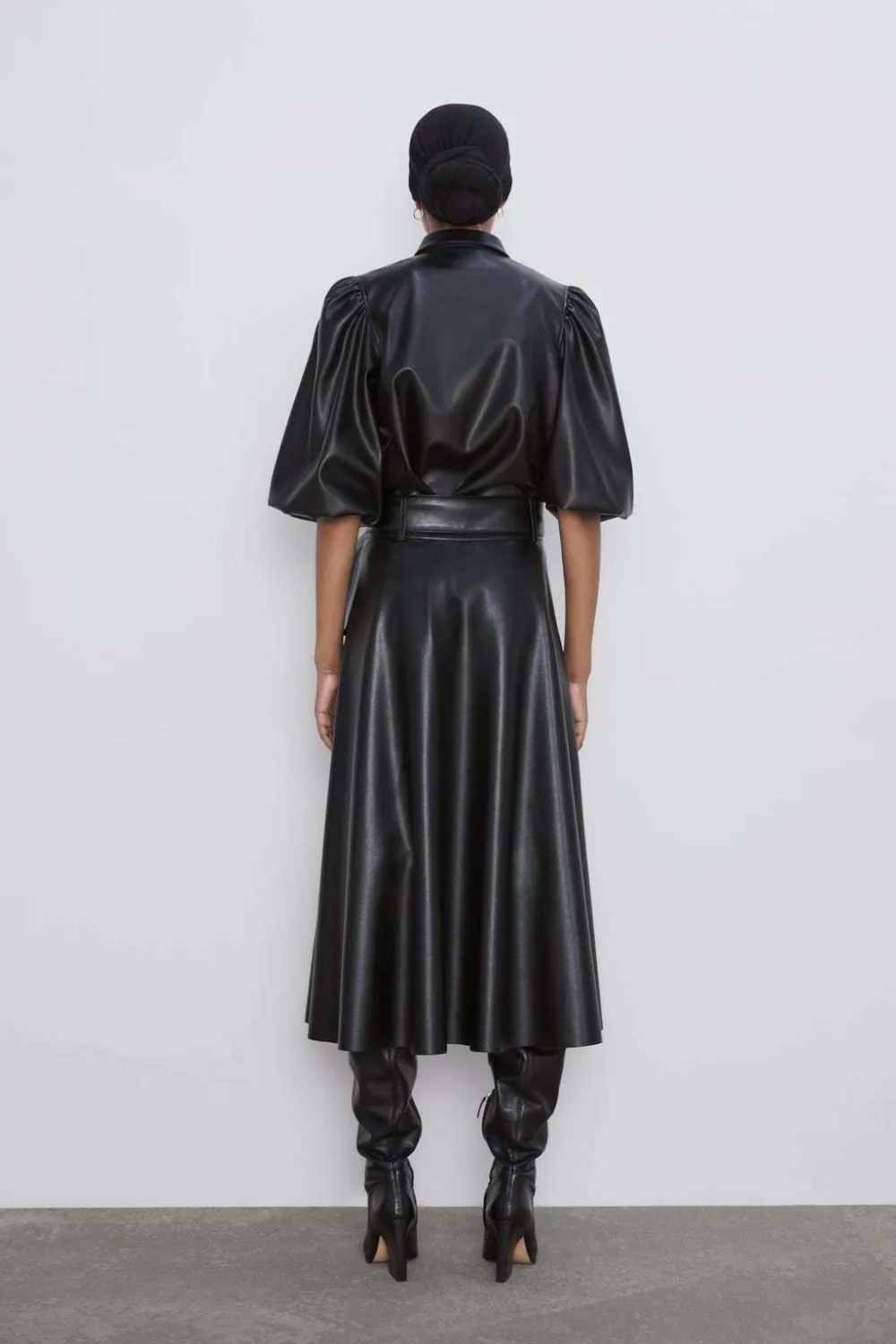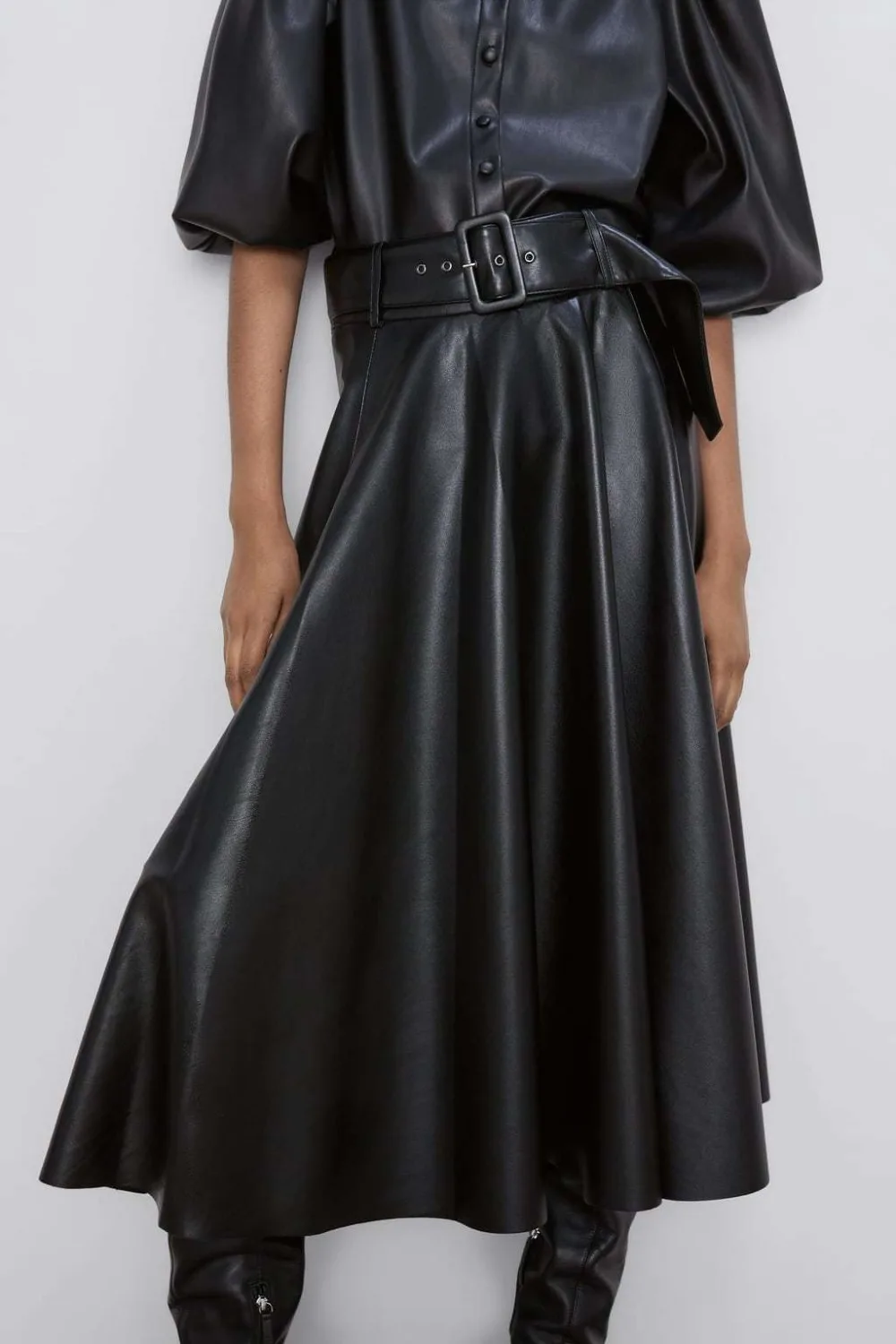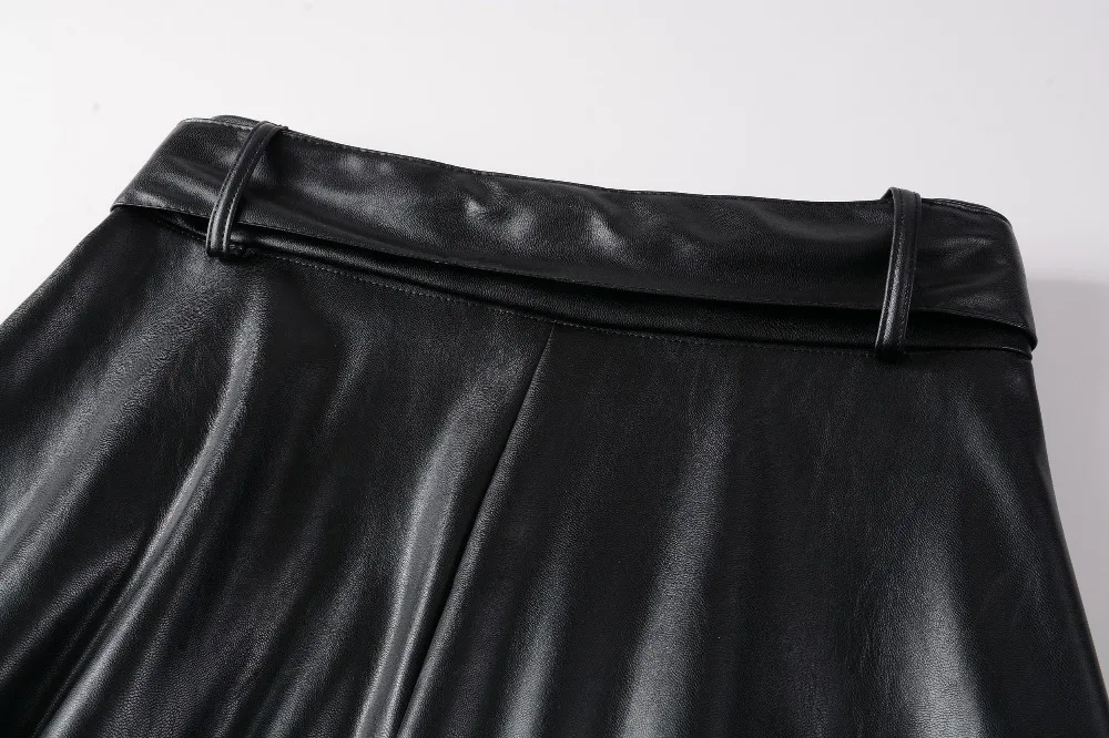 Женская плиссированная юбка из искусственной кожи, Осень-зима 2020