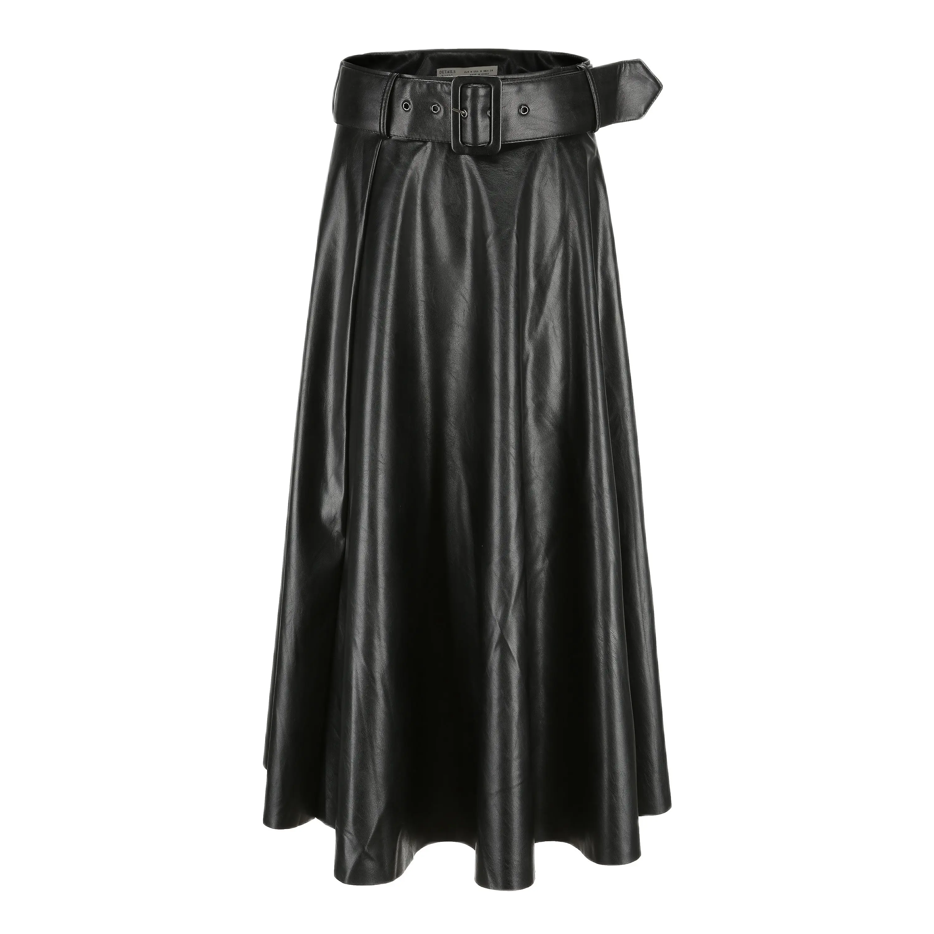 Женская Длинная черная юбка-трапеция с высокой талией и поясом