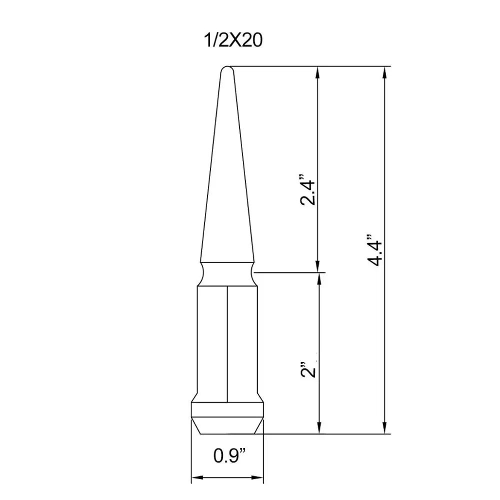 Размер резьбы: 1/2-20 Общая Длина: 4,4 дюймов/112 мм Общий диаметр: 0,9 дюймов/23 мм Тип сиденья: 60 градусов Коническое/конусное сиденье Материал: кованая сталь SCM 435 Применение: Aftermarket только в том случае, Размер шестигранной розетки: 3/4 ''(19 мм)